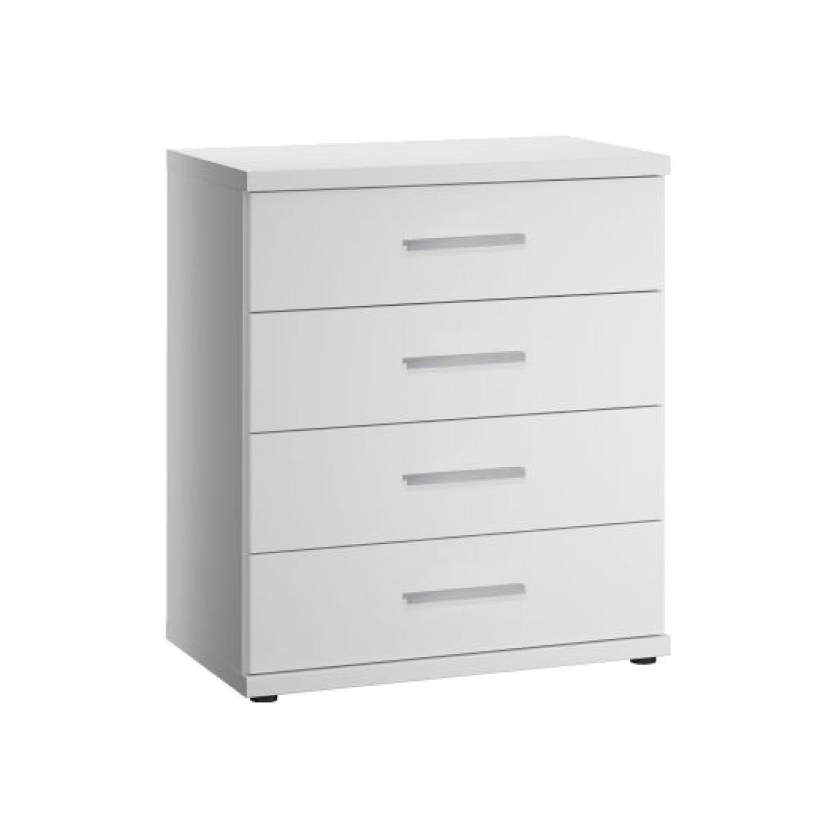 There is a hint of the country cottage to the styling of Cambridge, which we're certain will have wide appeal to those looking for something slightly more traditional. The 4 Drawer Wide Chest is available in a choice of colours. Add a couple of bedside cabinets, a complementary wardrobe and attach some clip-on lighting and hey presto, the perfect storage solution for your bedroom!  This product is proudly made in Germany and free home delivery and installation is included in the pricing. 4 Drawer Wide Chest Dimensions:W 75 x H 86 x D 42 cm Made in Germany Free home delivery and installation is included in the pricing Please note, the first image shows the White 025 finish and the second image shows the Champagne 023 finish.  All screens vary in colour reproduction and whilst every effort has been made to display the colour as accurately as possible it is for guidance only.