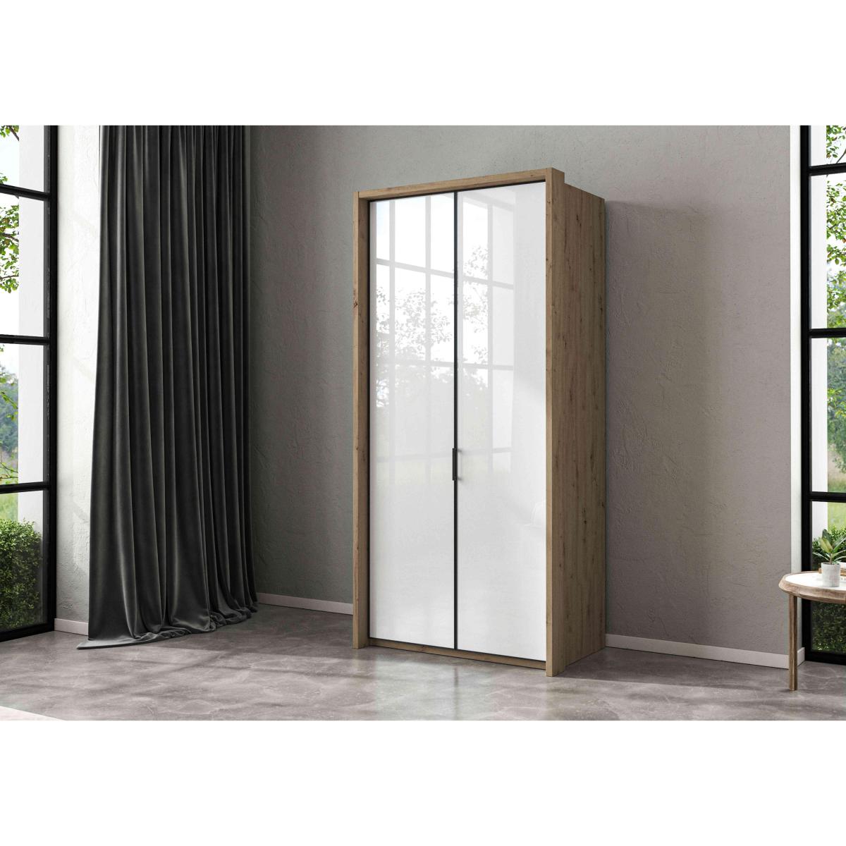 Designed and made for us by Wiemann, our Dallas range of bedroom furniture offers a dazzling array of stylish options for bedrooms large and small. Sliding door and hinged door wardrobes come in all sizes and in a choice of wood-effect and glass colours, and many also have useful full-height mirrored doors. Complete the look with matching chests of drawers and bedside cabinets. The German-made craftsmanship is exceptional and includes high-end touches like soft-close doors and drawers and a wide range of extra wardrobe fittings. Superb storage, on-trend style and incredible value – that’s the Wiemann Dallas range. With its stylish glass finish, this high-quality, high-style German-made wardrobe delivers fantastic quality for an incredible price. Why you'll love it Elevate your bedroom with this sleek 2-door hinged glass wardrobe. Contemporary style on a grand scale with superb interior storage. High-quality German craftsmanship at an exceptional price. Bright white finish with striking white glass doors. Soft-close doors, slate-coloured handles and stylish edge profiles. Assembled in your home free of charge. Made by Wiemann exclusively for Furniture Village. This 107 cm 2-door hinged glass wardrobe is part of our Wiemann Dallas range. What you need to know 2 shelves and 1 hanging rail in each wardrobe compartment. This finish may show surface scratches under certain lighting. Do not place in direct sunlight. Do not use abrasive cleaning products. Wipe clean with a damp cloth, and dry with a soft duster. This range includes a huge choice of hinged and sliding wardrobes, and chests of drawers. WARNING!