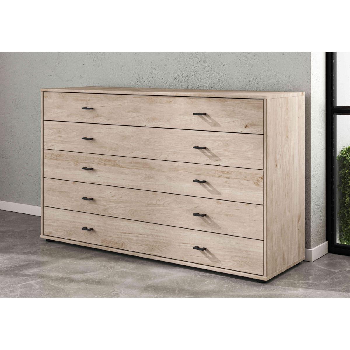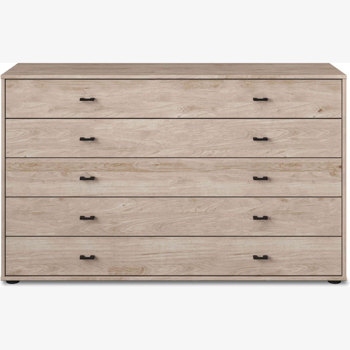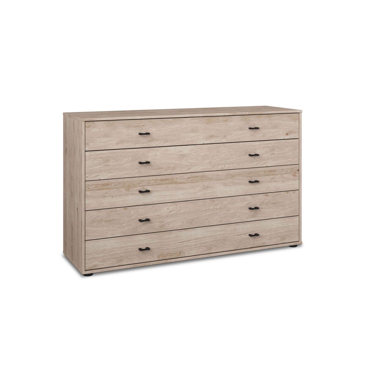 Designed and made for us by Wiemann, our Dallas range of bedroom furniture offers a dazzling array of stylish options for bedrooms large and small. Sliding door and hinged door wardrobes come in all sizes and in a choice of wood-effect and glass colours, and many also have useful full-height mirrored doors. Complete the look with matching chests of drawers and bedside cabinets. The German-made craftsmanship is exceptional and includes high-end touches like soft-close doors and drawers and a wide range of extra wardrobe fittings. Superb storage, on-trend style and incredible value – that’s the Wiemann Dallas range. Spacious bedroom? Treat yourself to this very roomy 5-drawer chest of drawers. At nearly a metre and a half wide and five drawers tall it really does have room for everything. So stylish too. Why you'll love it Elegant and simple, this wide 5-drawer chest of drawers is so spacious. Contemporary style that’s so well-designed. High-quality German craftsmanship at an exceptional price. Wood-effect finish in a choice of on-trend colours. Soft-close drawers with slate-coloured handles. Assembled in your home free of charge. Made by Wiemann exclusively for Furniture Village. This 141 cm 5-drawer chest is part of our Wiemann Dallas range. What you need to know This finish may show surface scratches under certain lighting. Do not place in direct sunlight. Do not use abrasive cleaning products. Wipe clean with a damp cloth, and dry with a soft duster. We recommend using coasters and placemats at all times. This range includes a huge choice of hinged and sliding wardrobes, and chests of drawers. WARNING!