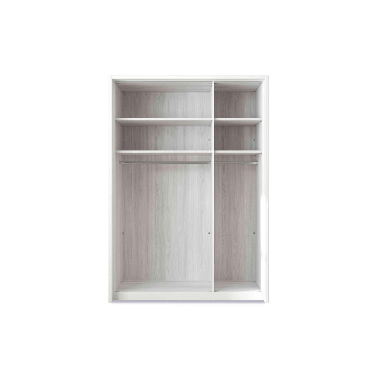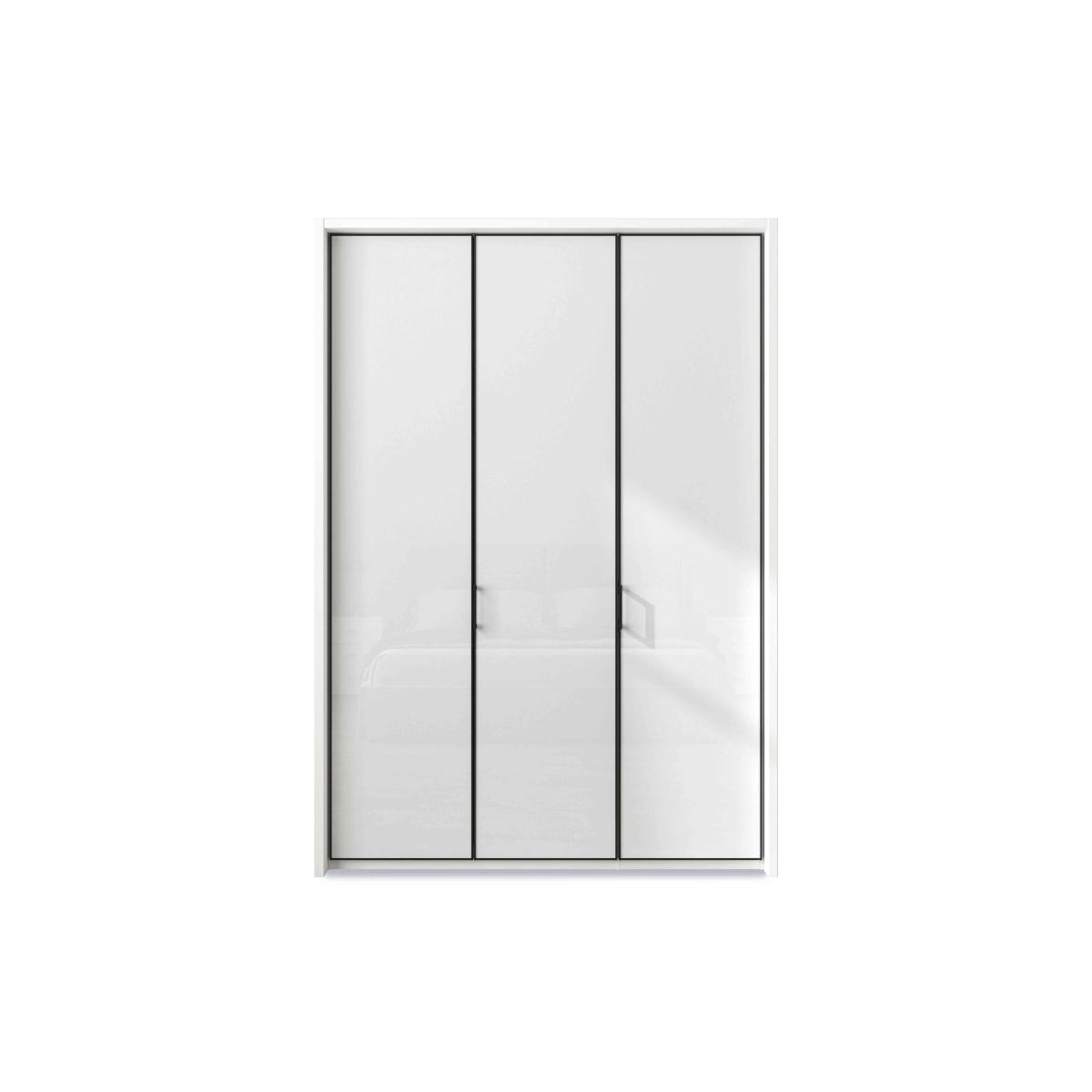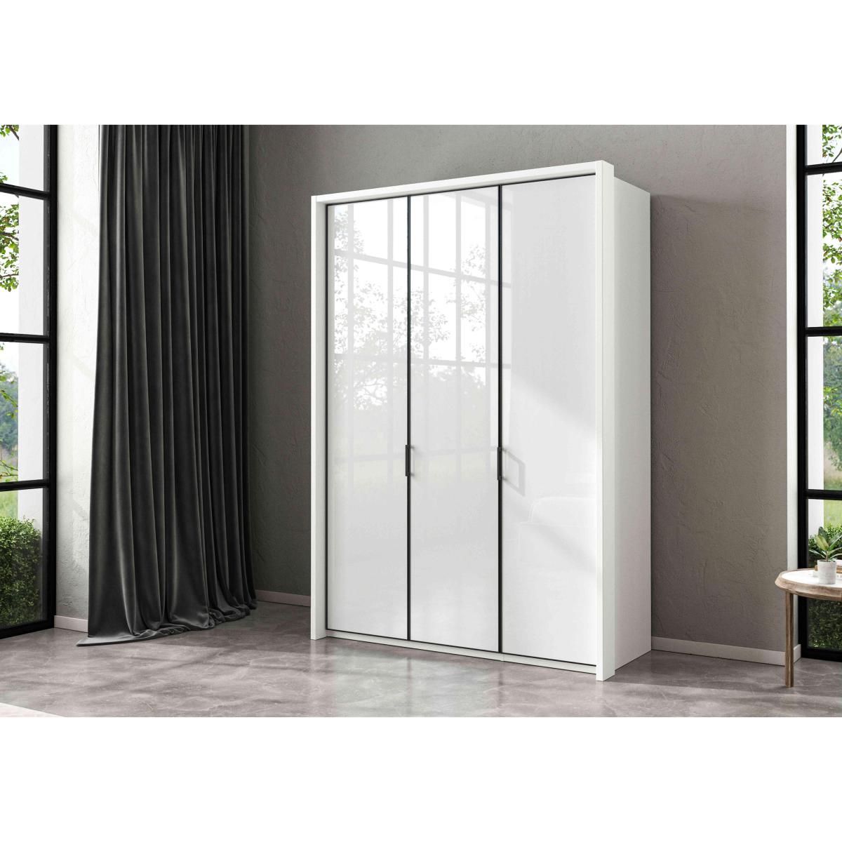 Designed and made for us by Wiemann, our Dallas range of bedroom furniture offers a dazzling array of stylish options for bedrooms large and small. Sliding door and hinged door wardrobes come in all sizes and in a choice of wood-effect and glass colours, and many also have useful full-height mirrored doors. Complete the look with matching chests of drawers and bedside cabinets. The German-made craftsmanship is exceptional and includes high-end touches like soft-close doors and drawers and a wide range of extra wardrobe fittings. Superb storage, on-trend style and incredible value – that’s the Wiemann Dallas range. Bright and white, this three-door glass-fronted hinged wardrobe makes any bedroom feel instantly more spacious. By Wiemann for Furniture Village. Why you'll love it This 3-door hinged glass wardrobe is spacious and stylish. Contemporary style on a grand scale with superb interior storage. High-quality German craftsmanship at an exceptional price. Bright white finish with striking white glass doors. Soft-close doors, slate-coloured handles and stylish edge profiles. Assembled in your home free of charge. Made by Wiemann exclusively for Furniture Village. This 157 cm 3-door hinged glass wardrobe is part of our Wiemann Dallas range. What you need to know 2 shelves and 1 hanging rail in each wardrobe compartment. This finish may show surface scratches under certain lighting. Do not place in direct sunlight. Do not use abrasive cleaning products. Wipe clean with a damp cloth, and dry with a soft duster. This range includes a huge choice of hinged and sliding wardrobes, and chests of drawers. WARNING!