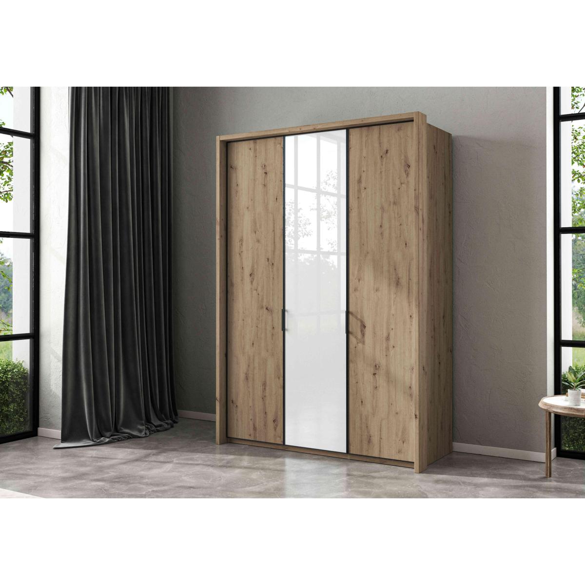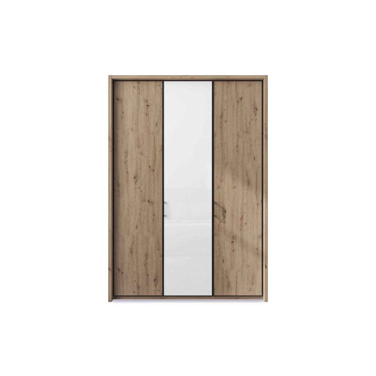 Designed and made for us by Wiemann, our Dallas range of bedroom furniture offers a dazzling array of stylish options for bedrooms large and small. Sliding door and hinged door wardrobes come in all sizes and in a choice of wood-effect and glass colours, and many also have useful full-height mirrored doors. Complete the look with matching chests of drawers and bedside cabinets. The German-made craftsmanship is exceptional and includes high-end touches like soft-close doors and drawers and a wide range of extra wardrobe fittings. Superb storage, on-trend style and incredible value – that’s the Wiemann Dallas range. We love the matt and glass finish of this three-door hinged wardrobe. It’s so stylish, and it’s available in a choice of colours. Why you'll love it 3-door hinged wardrobe with centre glass door redefines sleek style. Contemporary style on a grand scale with superb interior storage. High-quality German craftsmanship at an exceptional price. In a choice of colours with matching central glass door. Soft-close doors, slate-coloured handles and stylish edge profiles. Assembled in your home free of charge. Made by Wiemann exclusively for Furniture Village. This 157 cm 3-door hinged wardrobe with 1 glass door is part of our Wiemann Dallas range. What you need to know 2 shelves and 1 hanging rail in each wardrobe compartment. This finish may show surface scratches under certain lighting. Do not place in direct sunlight. Do not use abrasive cleaning products. Wipe clean with a damp cloth, and dry with a soft duster. This range includes a huge choice of hinged and sliding wardrobes, and chests of drawers. WARNING!