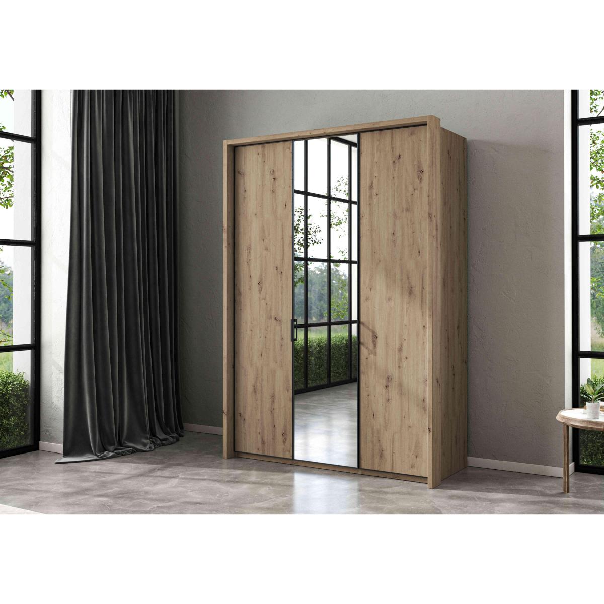 Designed and made for us by Wiemann, our Dallas range of bedroom furniture offers a dazzling array of stylish options for bedrooms large and small. Sliding door and hinged door wardrobes come in all sizes and in a choice of wood-effect and glass colours, and many also have useful full-height mirrored doors. Complete the look with matching chests of drawers and bedside cabinets. The German-made craftsmanship is exceptional and includes high-end touches like soft-close doors and drawers and a wide range of extra wardrobe fittings. Superb storage, on-trend style and incredible value – that’s the Wiemann Dallas range. Bring home sleek style and plenty of bedroom storage with this mirror door wardrobe from Wiemann – only at Furniture Village. Why you'll love it This 3-door hinged wardrobe is very spacious and has a handy mirror door. Contemporary style on a grand scale with superb interior storage. High-quality German craftsmanship at an exceptional price. Wood-effect finish in a choice of on-trend colours. Soft-close doors, slate-coloured handles and stylish edge profiles. Assembled in your home free of charge. Made by Wiemann exclusively for Furniture Village. This 157 cm 3-door hinged wardrobe with mirror door is part of our Wiemann Dallas range. What you need to know 2 shelves and 1 hanging rail in each wardrobe compartment. This finish may show surface scratches under certain lighting. Do not place in direct sunlight. Do not use abrasive cleaning products. Wipe clean with a damp cloth, and dry with a soft duster. This range includes a huge choice of hinged and sliding wardrobes, and chests of drawers. WARNING!
