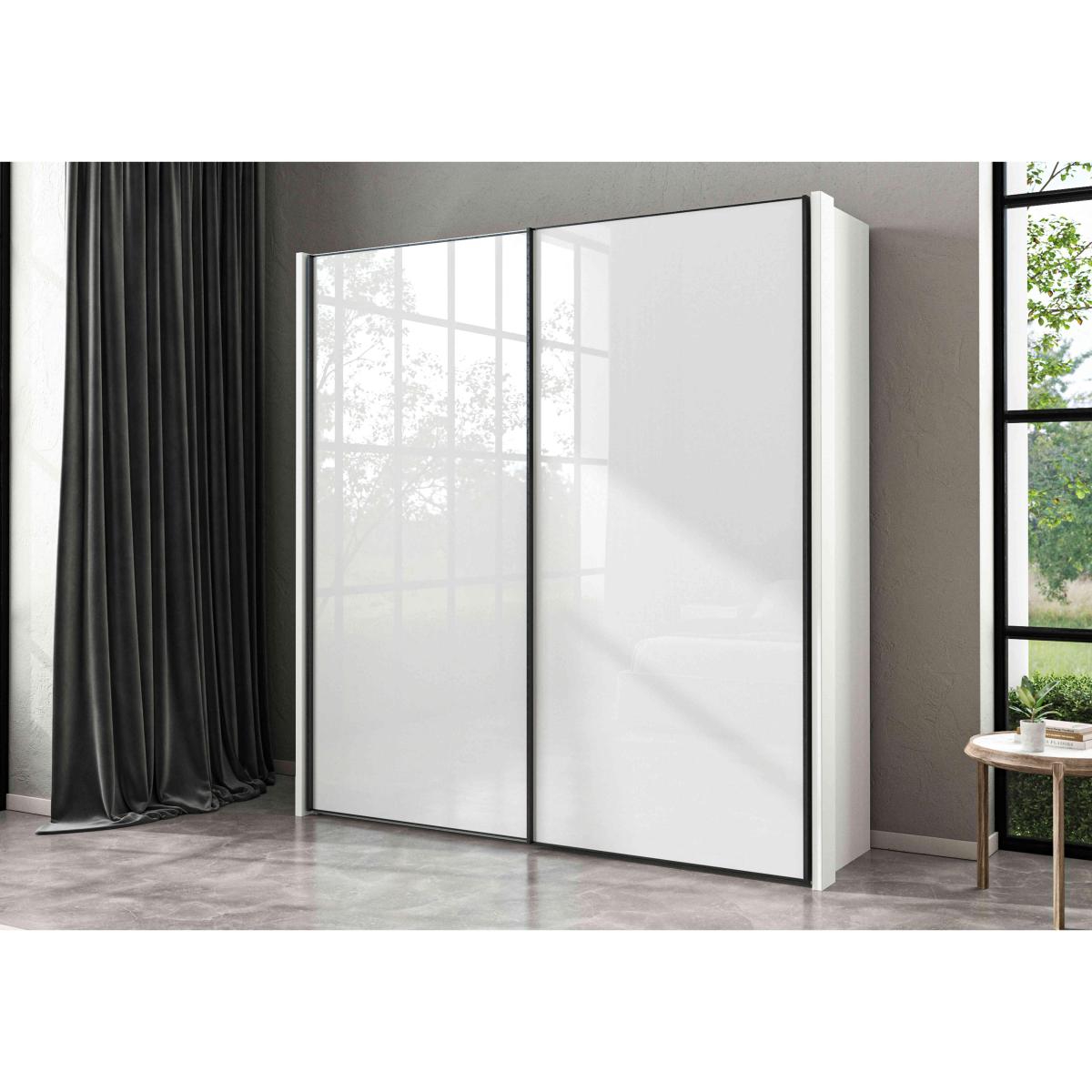 Designed and made for us by Wiemann, our Dallas range of bedroom furniture offers a dazzling array of stylish options for bedrooms large and small. Sliding door and hinged door wardrobes come in all sizes and in a choice of wood-effect and glass colours, and many also have useful full-height mirrored doors. Complete the look with matching chests of drawers and bedside cabinets. The German-made craftsmanship is exceptional and includes high-end touches like soft-close doors and drawers and a wide range of extra wardrobe fittings. Superb storage, on-trend style and incredible value – that’s the Wiemann Dallas range. We love this stylish wardrobe for lots of reasons – its spacious storage, its sleek lines and that white glass finish. Only at Furniture Village. Why you'll love it Beautiful 2-door sliding wardrobe has a very cool white glass finish. Contemporary style on a grand scale with superb interior storage. High-quality German craftsmanship at an exceptional price. Bright white finish with striking white glass doors. Soft-close doors and stylish edge profiles. Assembled in your home free of charge. Made by Wiemann exclusively for Furniture Village. This 210 cm 2-door sliding glass wardrobe is part of our Wiemann Dallas range. What you need to know 2 shelves and 1 hanging rail in each wardrobe compartment. This finish may show surface scratches under certain lighting. Do not place in direct sunlight. Do not use abrasive cleaning products. Wipe clean with a damp cloth, and dry with a soft duster. This range includes a huge choice of hinged and sliding wardrobes, and chests of drawers. WARNING!