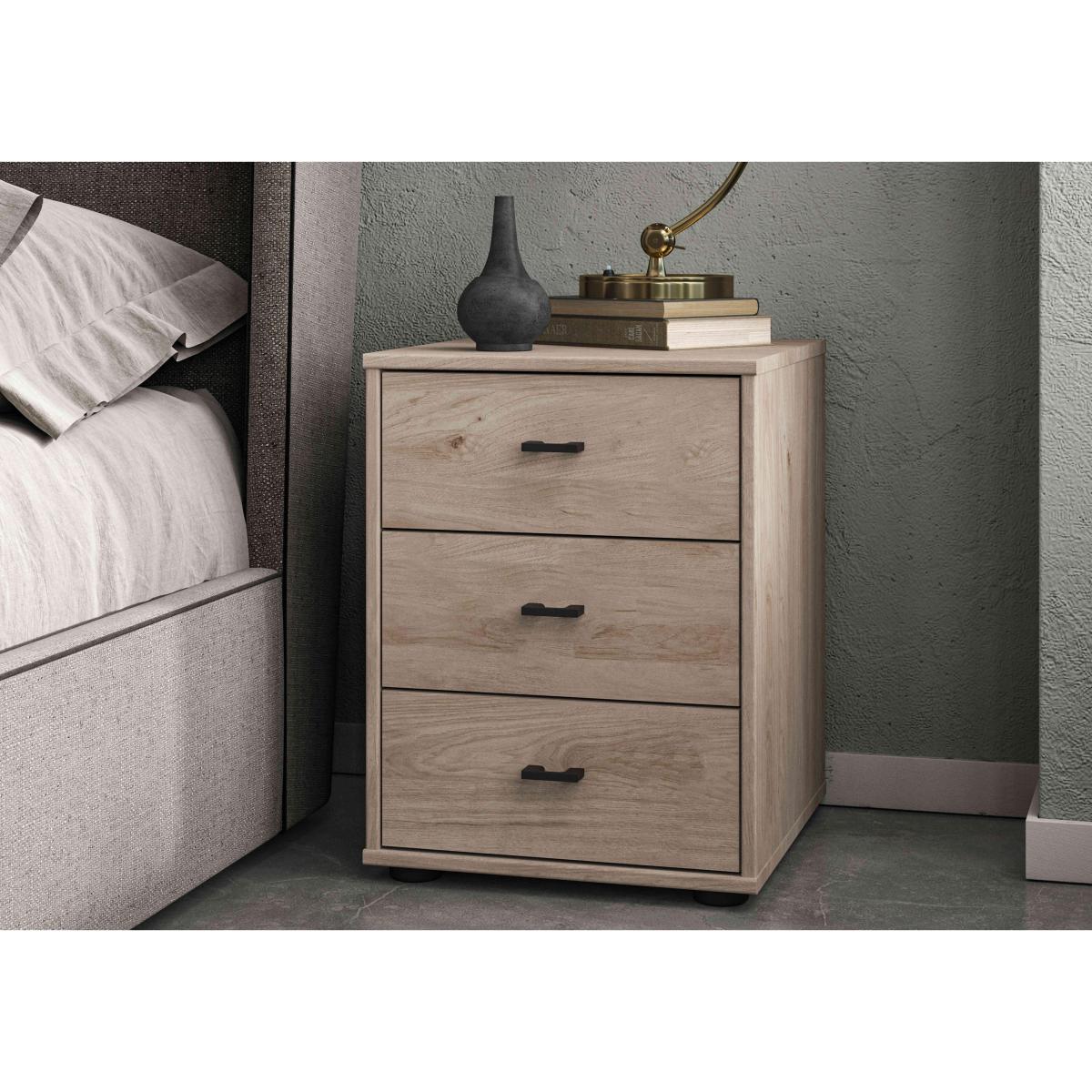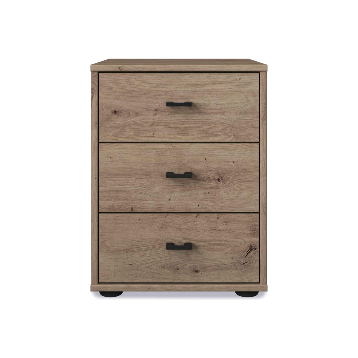 Designed and made for us by Wiemann, our Dallas range of bedroom furniture offers a dazzling array of stylish options for bedrooms large and small. Sliding door and hinged door wardrobes come in all sizes and in a choice of wood-effect and glass colours, and many also have useful full-height mirrored doors. Complete the look with matching chests of drawers and bedside cabinets. The German-made craftsmanship is exceptional and includes high-end touches like soft-close doors and drawers and a wide range of extra wardrobe fittings. Superb storage, on-trend style and incredible value – that’s the Wiemann Dallas range. With three drawers and a compact footprint, this bedside cabinet brings extra storage space to a smaller room. The sleek finish is modern and stylish. Why you'll love it Perfectly proportioned 3-drawer bedside cabinet with a sleek modern finish. Contemporary style that’s so well-designed. High-quality German craftsmanship at an exceptional price. Wood-effect finish in a choice of on-trend colours. Soft-close drawers with slate-coloured handles. Assembled in your home free of charge. Made by Wiemann exclusively for Furniture Village. This 40 cm 3-drawer bedside cabinet is part of our Wiemann Dallas range. What you need to know This finish may show surface scratches under certain lighting. Do not place in direct sunlight. Do not use abrasive cleaning products. Wipe clean with a damp cloth, and dry with a soft duster. We recommend using coasters and placemats at all times. This range includes a huge choice of hinged and sliding wardrobes, and chests of drawers.