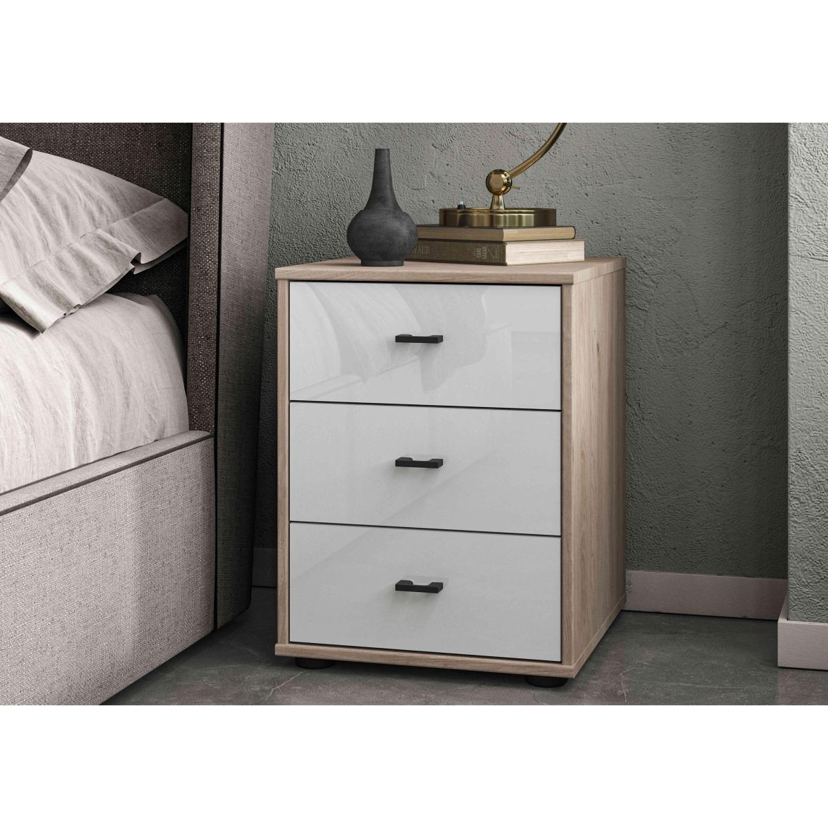 Designed and made for us by Wiemann, our Dallas range of bedroom furniture offers a dazzling array of stylish options for bedrooms large and small. Sliding door and hinged door wardrobes come in all sizes and in a choice of wood-effect and glass colours, and many also have useful full-height mirrored doors. Complete the look with matching chests of drawers and bedside cabinets. The German-made craftsmanship is exceptional and includes high-end touches like soft-close doors and drawers and a wide range of extra wardrobe fittings. Superb storage, on-trend style and incredible value – that’s the Wiemann Dallas range. Make a small room look bigger with this light-enhancing glass-fronted bedside cabinet in bright white. By Wiemann for Furniture Village. Why you'll love it Small but perfectly formed, this bedside cabinet has stylish glass drawer fronts. Contemporary style that’s so well-designed. High-quality German craftsmanship at an exceptional price. Bright white finish with striking white glass drawer fronts. Soft-close drawers with slate-coloured handles. Assembled in your home free of charge. Made by Wiemann exclusively for Furniture Village. This 40 cm 3-drawer glass bedside cabinet is part of our Wiemann Dallas range. What you need to know This finish may show surface scratches under certain lighting. Do not place in direct sunlight. Do not use abrasive cleaning products. Wipe clean with a damp cloth, and dry with a soft duster. We recommend using coasters and placemats at all times. This range includes a huge choice of hinged and sliding wardrobes, and chests of drawers.