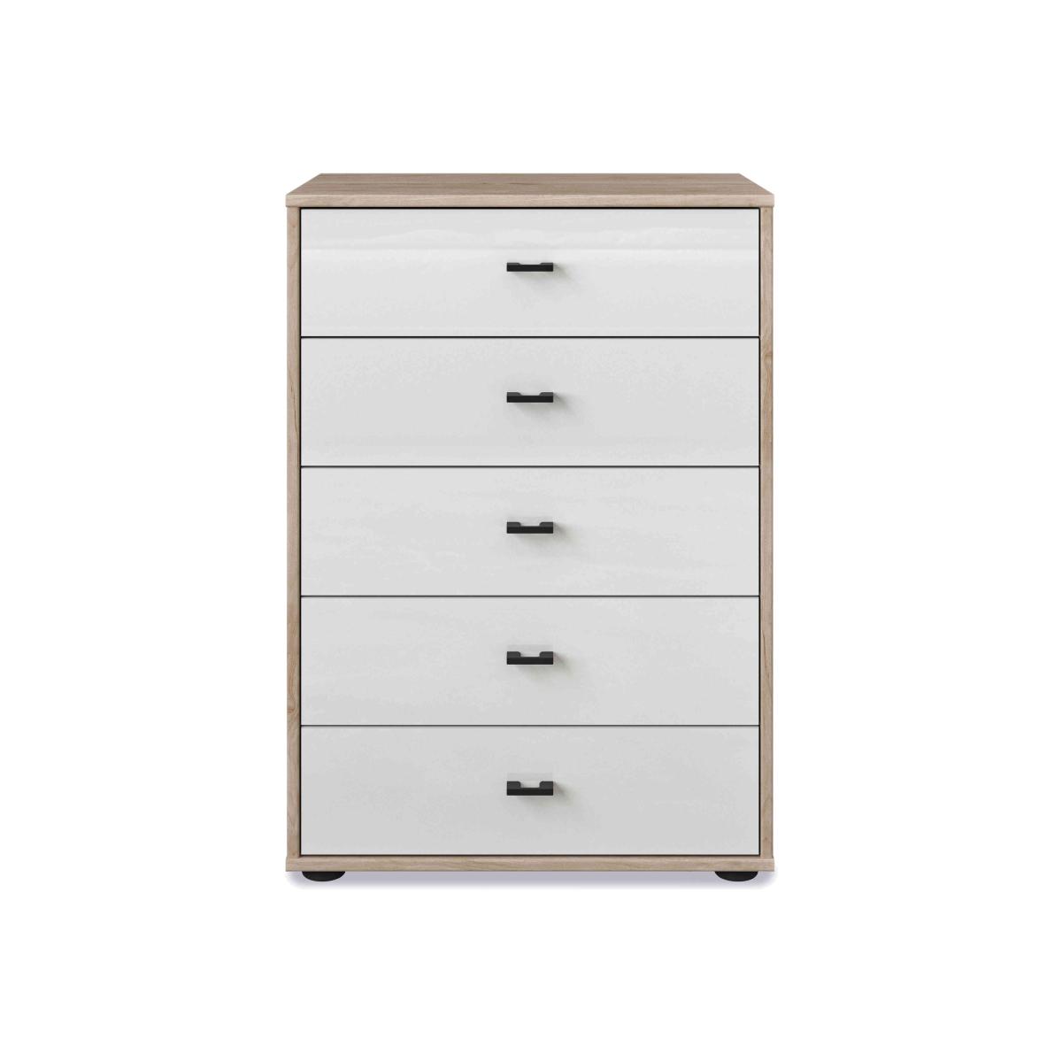 Wiemann - Dallas 60cm 5 Drawer Glass Chest - Oak and White