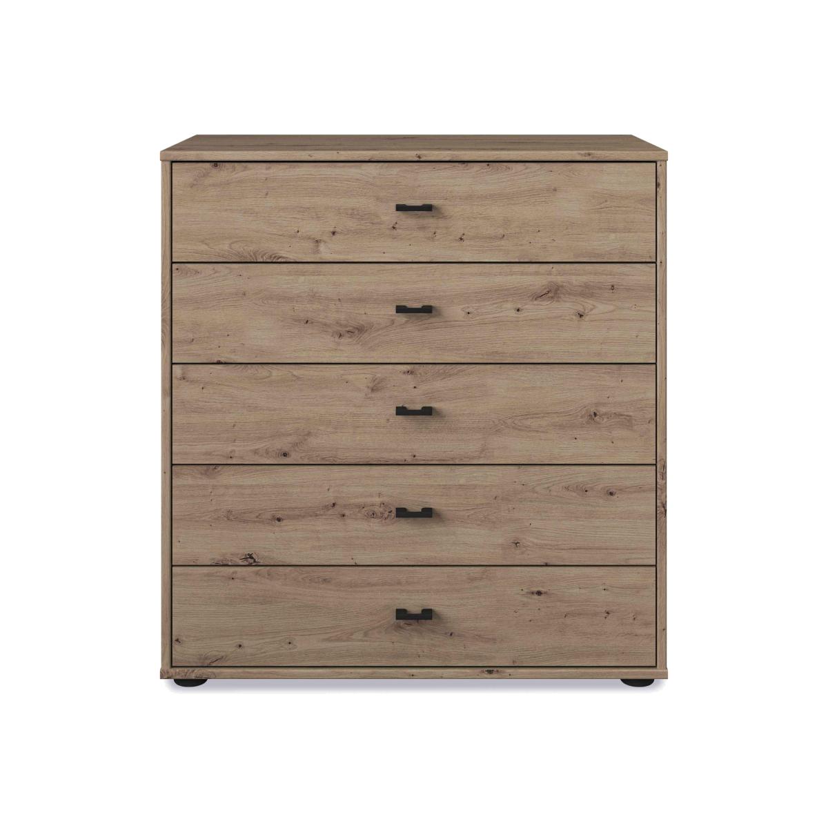 Designed and made for us by Wiemann, our Dallas range of bedroom furniture offers a dazzling array of stylish options for bedrooms large and small. Sliding door and hinged door wardrobes come in all sizes and in a choice of wood-effect and glass colours, and many also have useful full-height mirrored doors. Complete the look with matching chests of drawers and bedside cabinets. The German-made craftsmanship is exceptional and includes high-end touches like soft-close doors and drawers and a wide range of extra wardrobe fittings. Superb storage, on-trend style and incredible value – that’s the Wiemann Dallas range. Enjoy spacious storage, a sleek finish and cool bedroom style – all for a great-value price – when you choose this five-drawer chest of drawers. Why you'll love it This roomy 5-drawer chest of drawers is both fabulous and functional. Contemporary style that’s so well-designed. High-quality German craftsmanship at an exceptional price. Wood-effect finish in a choice of on-trend colours. Soft-close drawers with slate-coloured handles. Assembled in your home free of charge. Made by Wiemann exclusively for Furniture Village. This 80 cm 5-drawer chest is part of our Wiemann Dallas range. What you need to know This finish may show surface scratches under certain lighting. Do not place in direct sunlight. Do not use abrasive cleaning products. Wipe clean with a damp cloth, and dry with a soft duster. We recommend using coasters and placemats at all times. This range includes a huge choice of hinged and sliding wardrobes, and chests of drawers. WARNING!