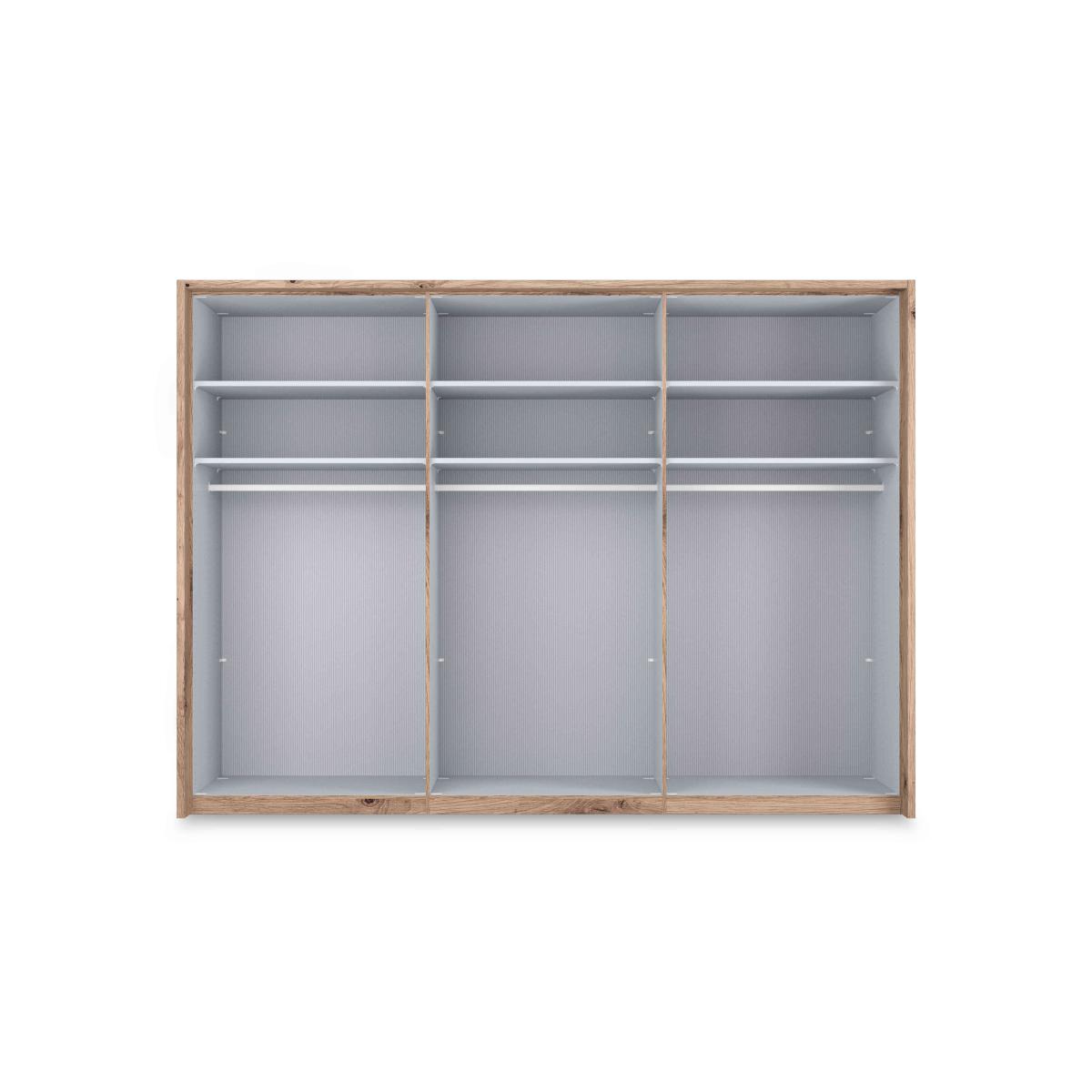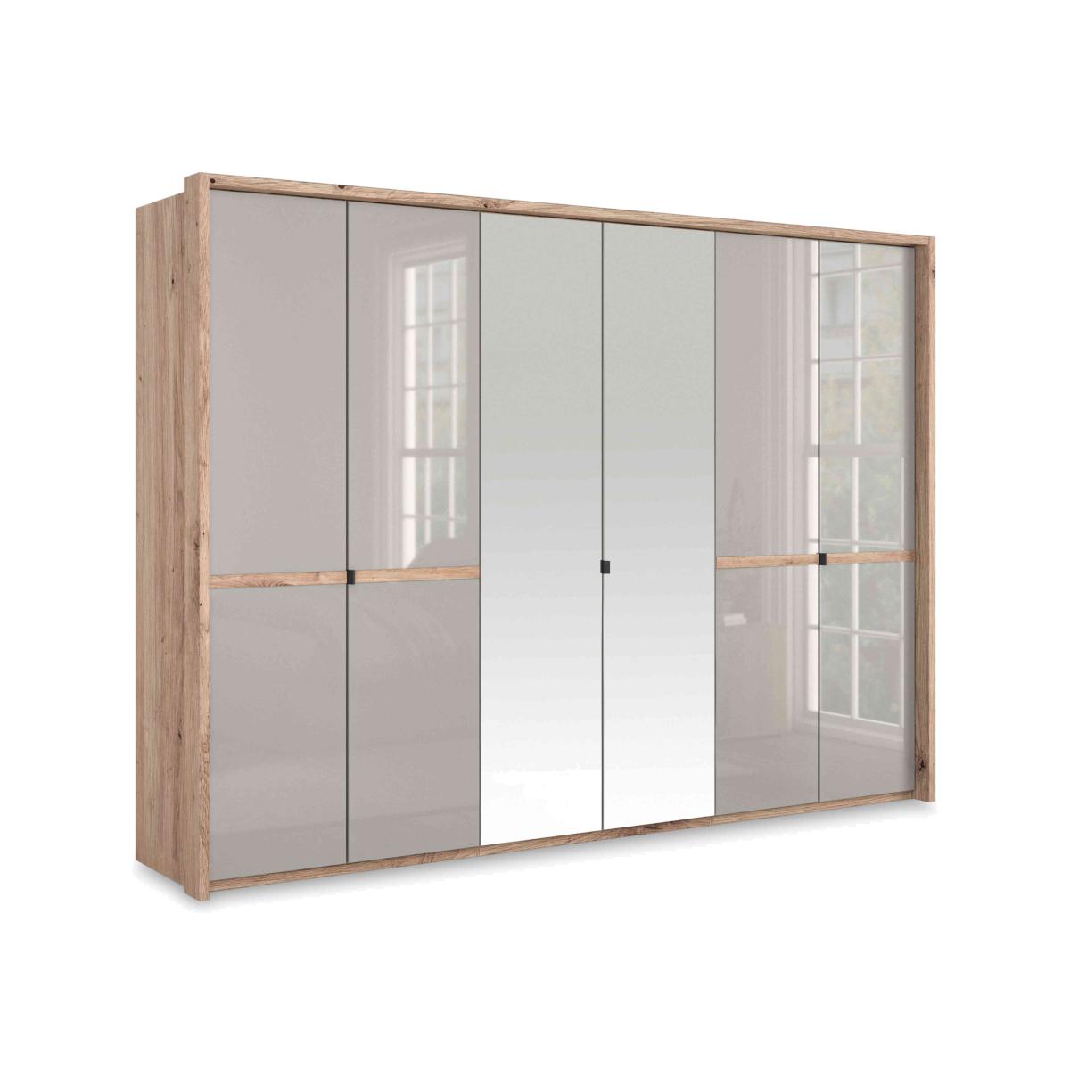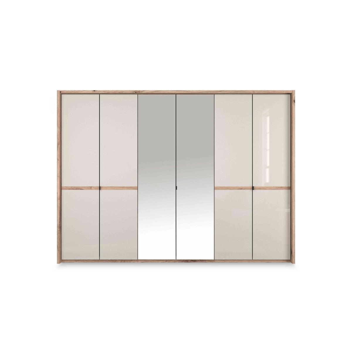 Elegant and contemporary, the Wiemann Hong Kong bedroom furniture collection brings home sophisticated style as well as spacious storage. Hinged-door wardrobes and chest of drawers have beautiful glass doors and drawers in a choice of colours, a beautiful finish that's accentuated by the slim Nordic oak-effect frames. Pieces are generously proportioned and offer well-designed storage capabilities. Wardrobes come equipped with shelves and hanging rails and additional internal fittings – drawer units, mirrors, LED lighting and more – can be added. The Hong Kong range is crafted in Germany by the furniture excerpts at Wiemann. Clearly contemporary and effortlessly elegant, this very large hinged-door wardrobe has glass and mirrored doors and a contrasting slim oak-effect frame. By Wiemann. Why you'll love it Elegant and contemporary bedroom furniture from Wiemann. This large 6-door hinged wardrobe has 4 glass doors and 2 mirror doors. Stunning design with contrasting slimline Nordic oak-effect frame. Glass doors are available in a choice of sophisticated colours. Pinstripe-effect interior completes this wardrobe’s premium look. Spacious storage with plenty of hanging and shelf space. Ergonomic interior fittings available – drawer units, mirrors, LED lighting and more. Expertly crafted in Germany. This 6-door hinged wardrobe is part of the Wiemann Hong Kong range. What you need to know Assembled and installed for you on delivery. Cost is included in the delivery charge. 1 hanging rail and 2 shelves in each compartment. Dust with a lint-free cloth. Do not use silicone based furniture polishes. WARNING!