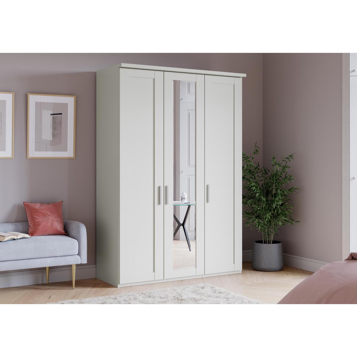 Style and function in one beautifully engineered SF wardrobe. Plenty of storage space, useful mirrored door and the sleek ergonomic style of a fitted wardrobe. Made in Germany. Why youll love it Semi- fitted wardrobe functionality, sleek fitted furniture appearance. A contemporary interpretation of Shaker style. Full- height centre mirrored door. Assembled in your home free of charge. Choose white or Furniture Village- exclusive champagne. Additional shelves, hanging rails and internal fittings are available. Upgrade to LED lighting. Exceptional quality and outstanding value for money. Made to order in Germany by Wiemann. What you need to know Metal door handles have a matt silver finish. There are two shelves and a hanging rail in each internal compartment. Shelves and hanging rails are height adjustable. The Wiemann Kempton range includes a huge choice of wardrobe sizes. Complete the look with a Wiemann Kempton chest of drawers. WARNING! Furniture can tip over unexpectedly and cause injury. This item shall be fixed to a wall using the anti- tip kit provided with the furniture. Be sure to use the correct wall fixings suitable for the walls in your home.