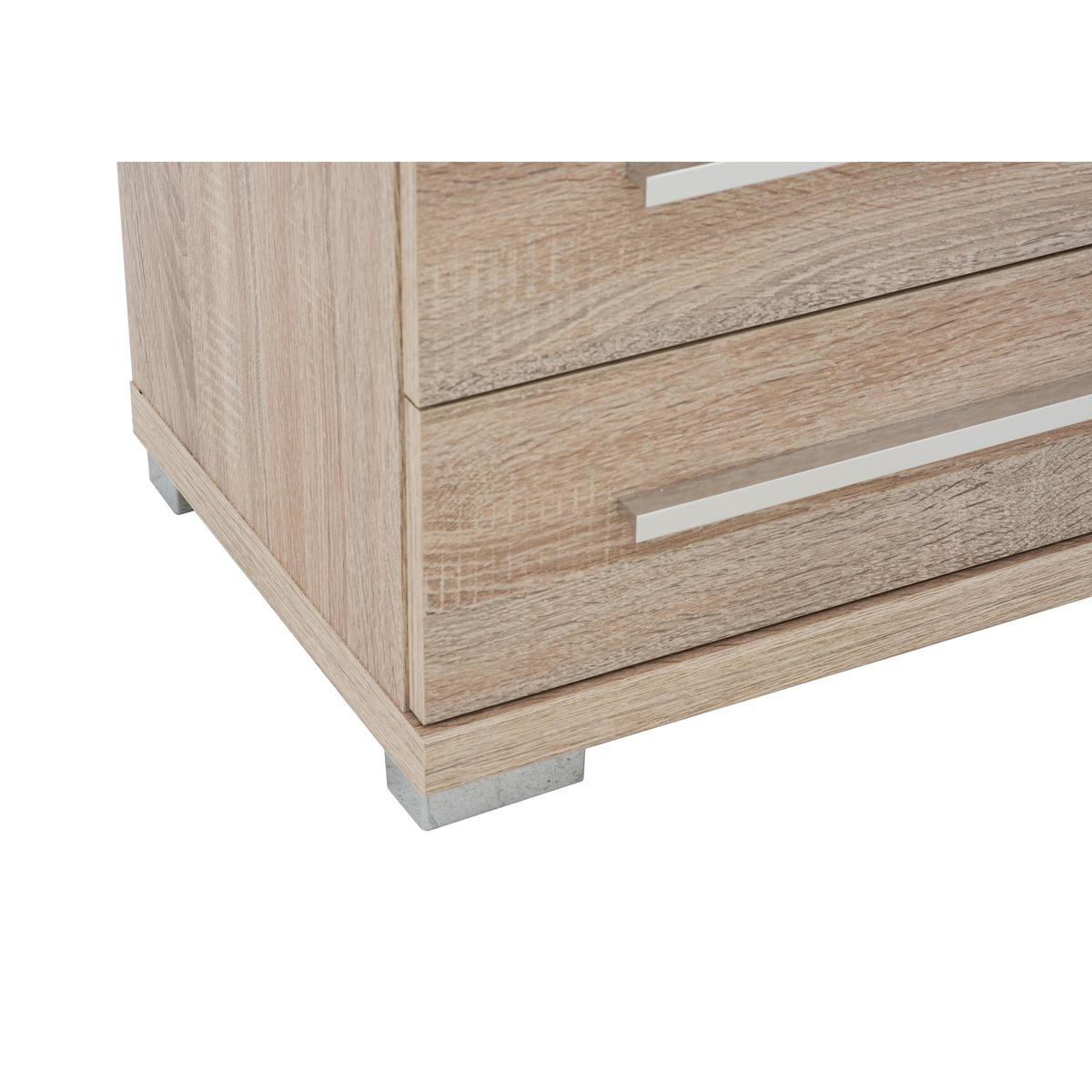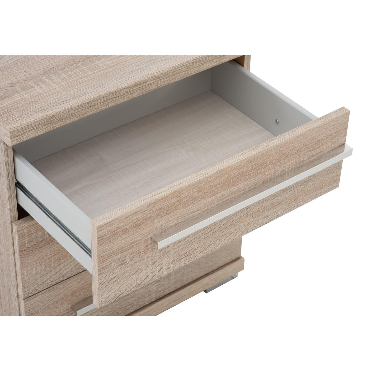 Laguna bedroom furniture has the sleek appeal of modern fitted furniture but is free standing, so it can move home with you. Made in Germany from high quality materials in a pure, minimalist style, Laguna brings you slider wardrobes and chests in a choice of sizes and finishes. Assembled for you on delivery, the soft close slider wardrobes have stylish frame surrounds, central mirrored panels and adjustable shelves and hanging rails. Beautiful contemporary style at an outstanding value price. Stylish minimalist modern 3 drawer bedside table. In a choice of beautiful, durable decorative foil finishes. 3 drawers with stylish linear metal handles. Contemporary metal feet. Choose left or right hand placed drawer handles. Delivered fully assembled. Sleek contemporary designer style at a great value price.