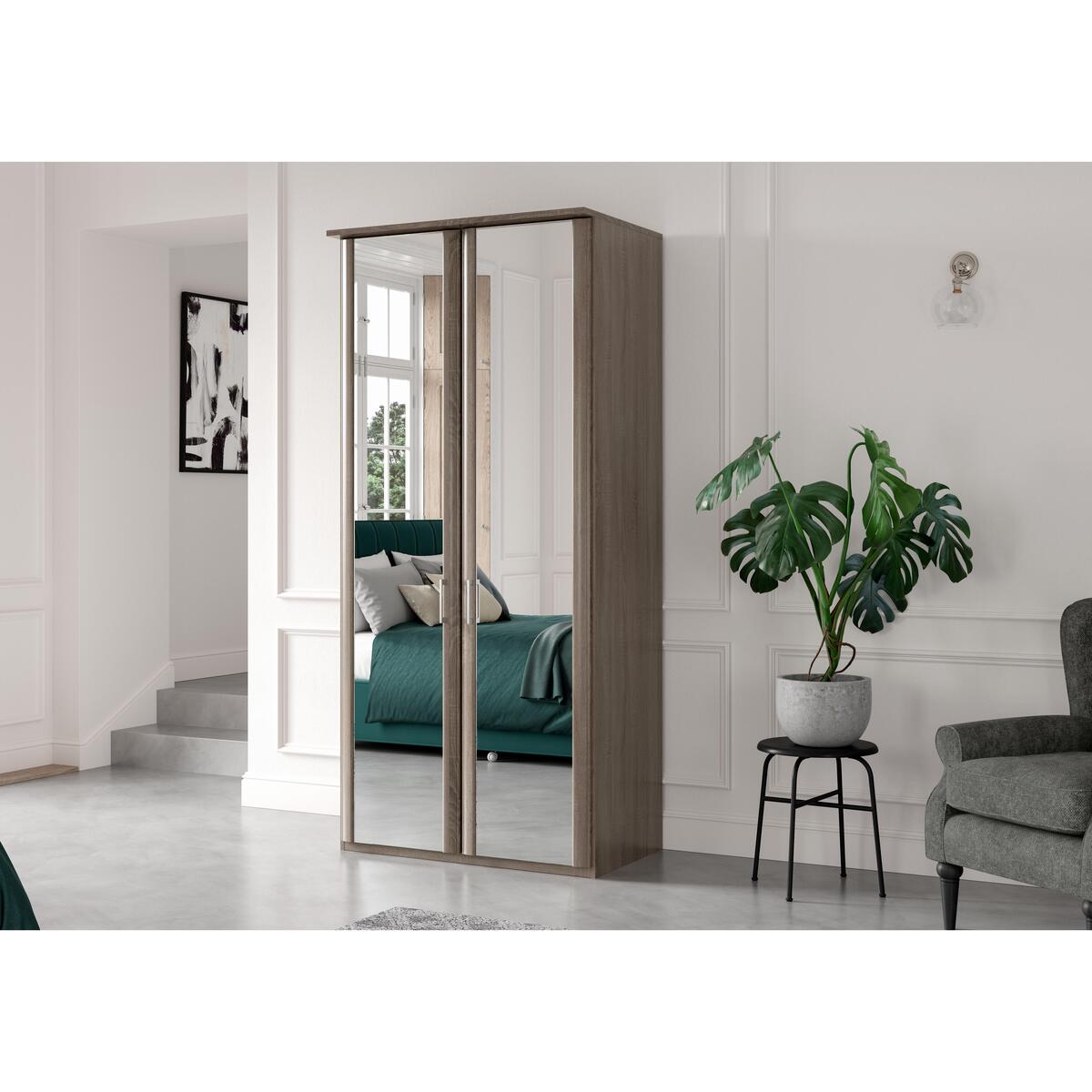 The convenience of freestanding furniture – with all the sleek ergonomic style of fitted furniture. The Wiemann Oxford semi-fitted range really does offer the best of both worlds alongside a huge choice of furniture options that include both hinged and sliding door wardrobes, and chests of drawers. The look is minimalist and modern, which means it fits well into most styles of decor. Choose from three finishes, all accentuated with matt silver metallic handles. And because it’s designed and made in Germany by furniture experts Wiemann, you can also be sure of well-crafted functionality at a great-value Furniture Village price. Sleek minimalist style and useful practicality in one. This well-crafted wardrobe has shelves, hanging rails and fully mirrored doors, making it a great choice for a more compact bedroom. Why you’ll love it. Practical semi-fitted furniture with that sleek fitted furniture look. Modern minimalist style. 2 full-height mirrored doors. Assembled in your home free of charge. Choice of three beautiful finishes. Additional shelves, hanging rails and internal fittings are available. Upgrade to soft-close doors and LED lighting. Quality you can count on at an outstanding value price. Made to order in Germany by Wiemann. What you need to know. Metal door handles have a matt silver finish. There are two shelves and a hanging rail in each internal compartment. Shelves and hanging rails are height adjustable. The Wiemann Oxford range offers a huge choice of hinged and sliding wardrobes. Complete the look with a Wiemann Oxford chest of drawers. WARNING!. Furniture can tip over unexpectedly and cause injury. This item shall be fixed to a wall using the anti-tip kit provided with the furniture. Be sure to use the correct wall fixings suitable for the walls in your home.