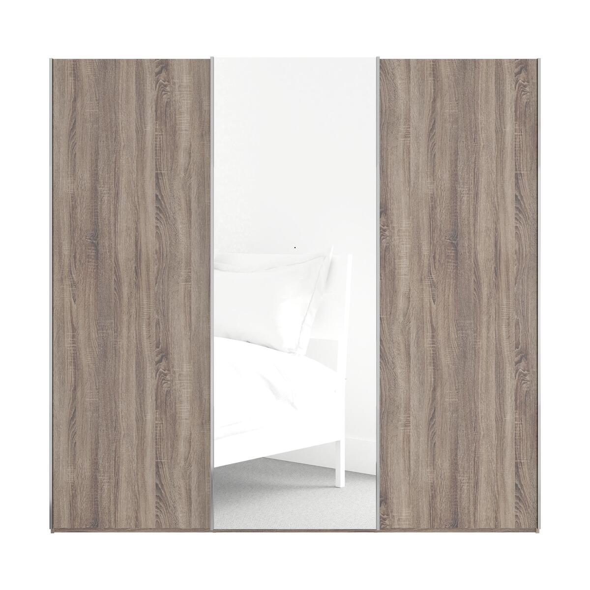 The convenience of freestanding furniture – with all the sleek ergonomic style of fitted furniture. The Wiemann Oxford semi-fitted range really does offer the best of both worlds alongside a huge choice of furniture options that include both hinged and sliding door wardrobes, and chests of drawers. The look is minimalist and modern, which means it fits well into most styles of decor. Choose from three finishes, all accentuated with matt silver metallic handles. And because it’s designed and made in Germany by furniture experts Wiemann, you can also be sure of well-crafted functionality at a great-value Furniture Village price. Bring minimalist style to your bedroom with this large Wiemann slider wardrobe. Sleek and modern, with the added bonus of free in-home assembly. Why you’ll love it. Practical semi-fitted furniture with that sleek fitted furniture look. Modern minimalist style. Full height mirrored centre door. Assembled in your home free of charge. Choice of three beautiful finishes. Additional shelves, hanging rails and internal fittings are available. Upgrade to soft-close doors and LED lighting. Quality you can count on at an outstanding value price. Made to order in Germany by Wiemann. What you need to know. Metal door handle ledges have a matt silver finish. There are two shelves and a hanging rail in each internal compartment. Shelves and hanging rails are height adjustable. The Wiemann Oxford range offers a huge choice of hinged and sliding wardrobes. Complete the look with a Wiemann Oxford chest of drawers. WARNING!. Furniture can tip over unexpectedly and cause injury. This item shall be fixed to a wall using the anti-tip kit provided with the furniture. Be sure to use the correct wall fixings suitable for the walls in your home.