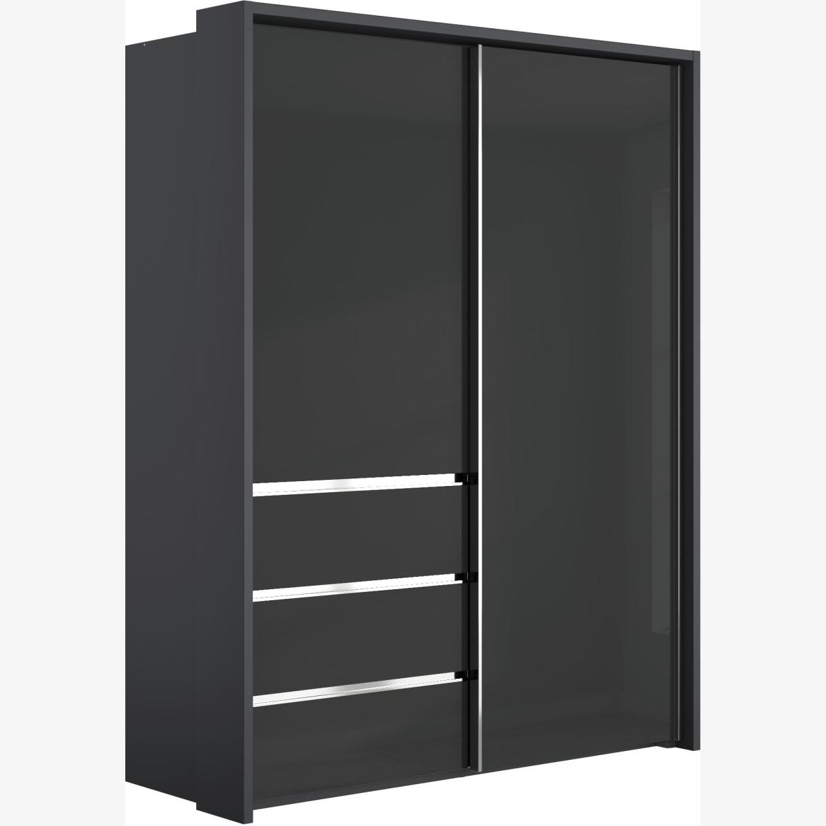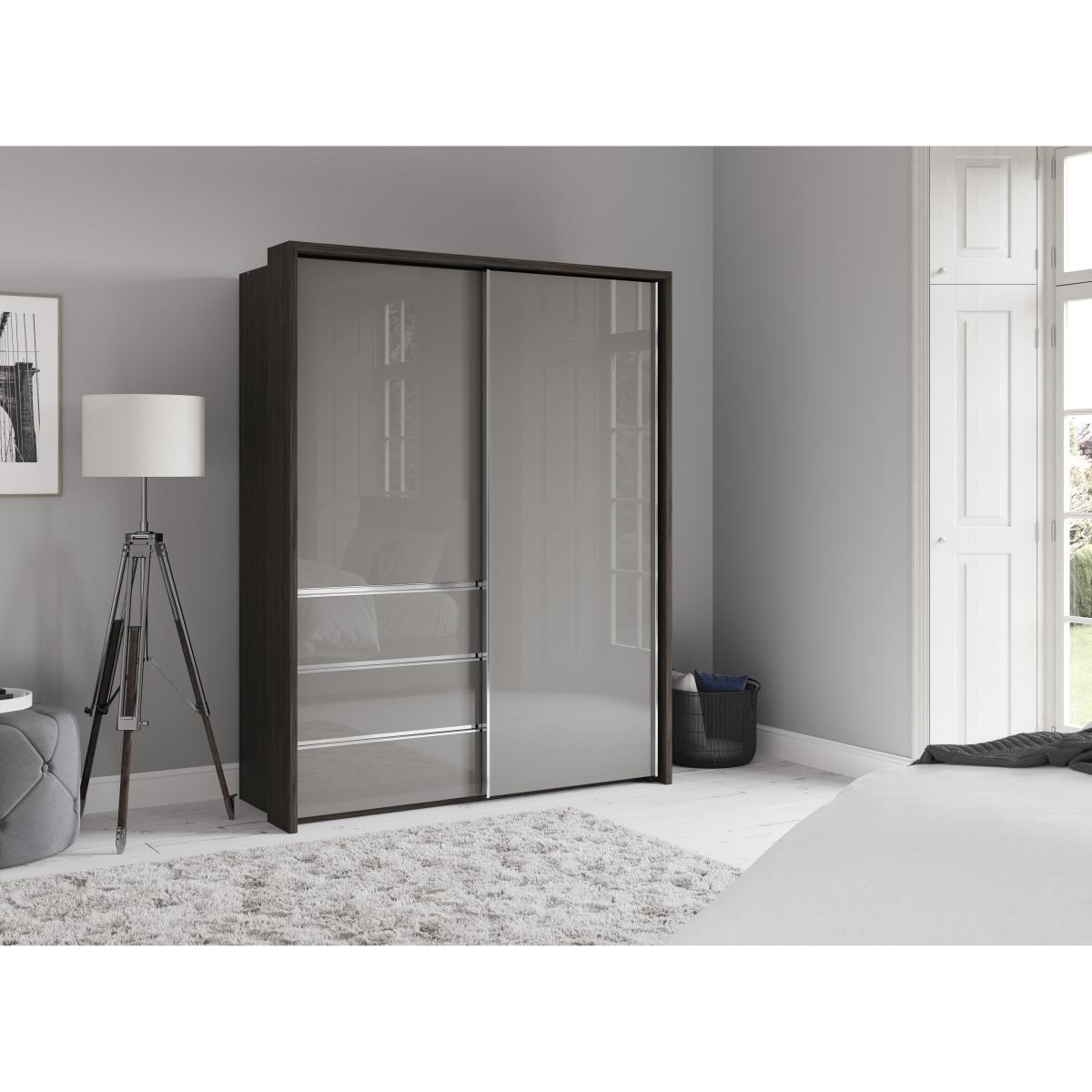 This well-crafted modern wardrobe is the perfect piece for a smaller bedroom as it has three roomy drawers plus spacious hanging space. Why you'll love it This versatile 2-door sliding wardrobe has drawers, shelves and hanging space. Contemporary minimalist style. Outstanding quality at an exceptional price. A freestanding wardrobe that looks just like fitted furniture. In a wide choice of beautiful colours and finishes. Customise yours with additional interior fittings. Call to learn more. Made in Germany by Wiemann and only at Furniture Village. This 175 cm 2-door sliding wardrobe with 3 drawers is part of the Wiemann Pacifica 2 range. What you need to know Drawers are on the left-hand side. 2 shelves and 1 hanging rail in each compartment. Silver grey stripe interior finish. Chrome door handles. Doors and drawers are soft-closing. Assembled in your home free of charge. This range includes chests of drawers, and bifold, combi and sliding wardrobes. WARNING!
