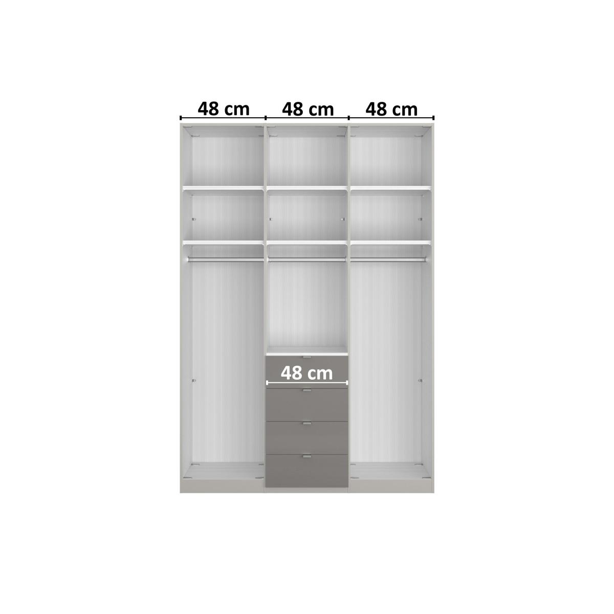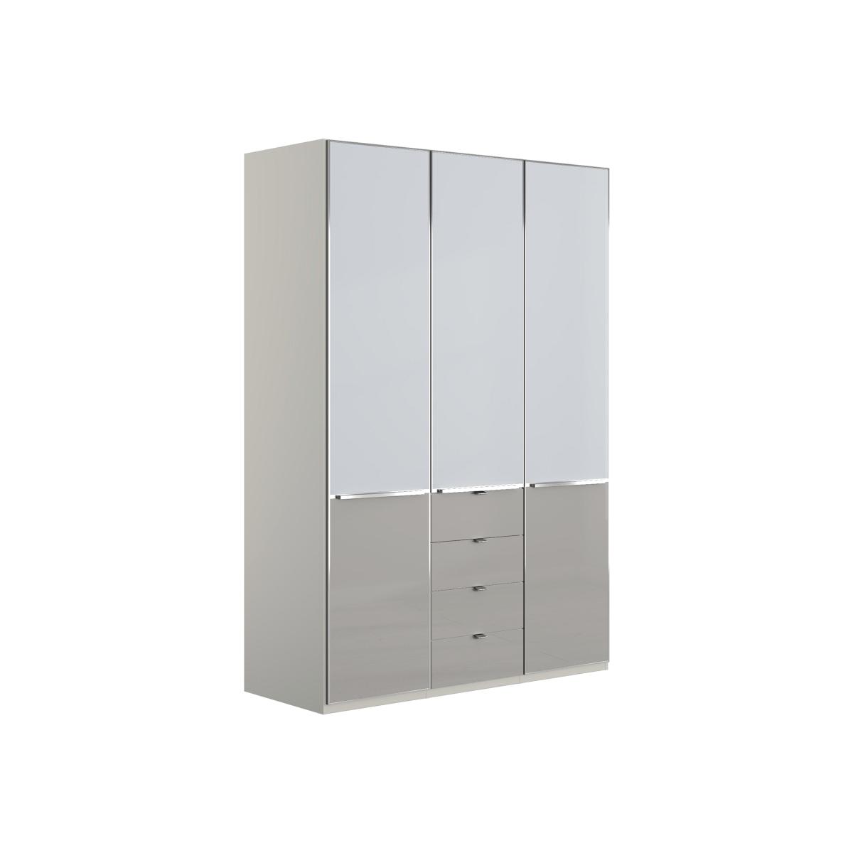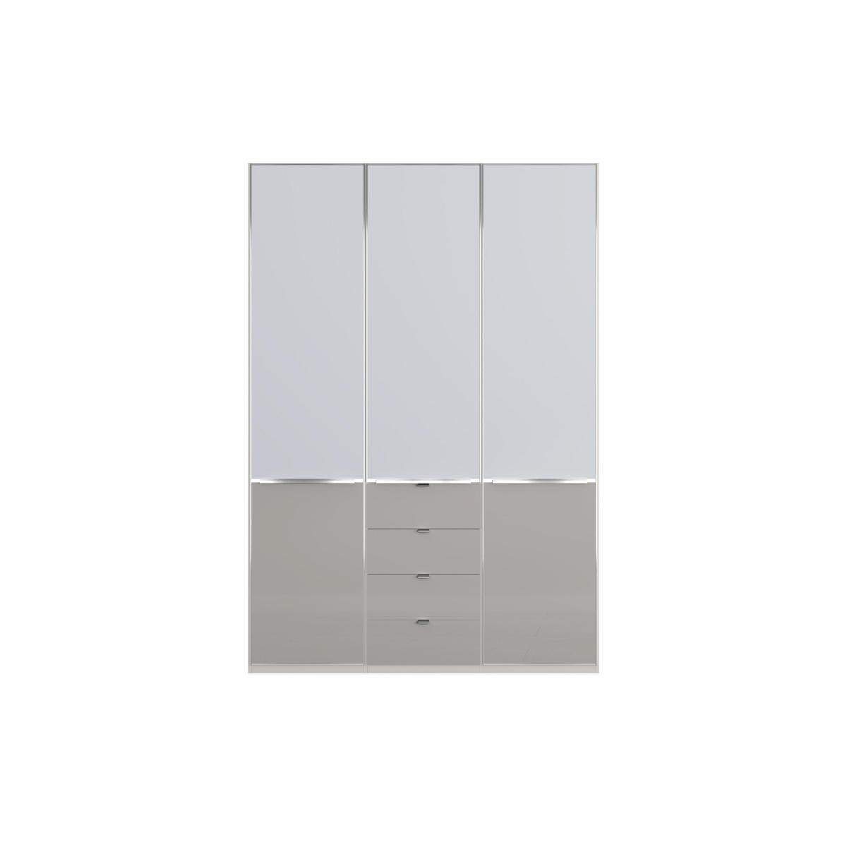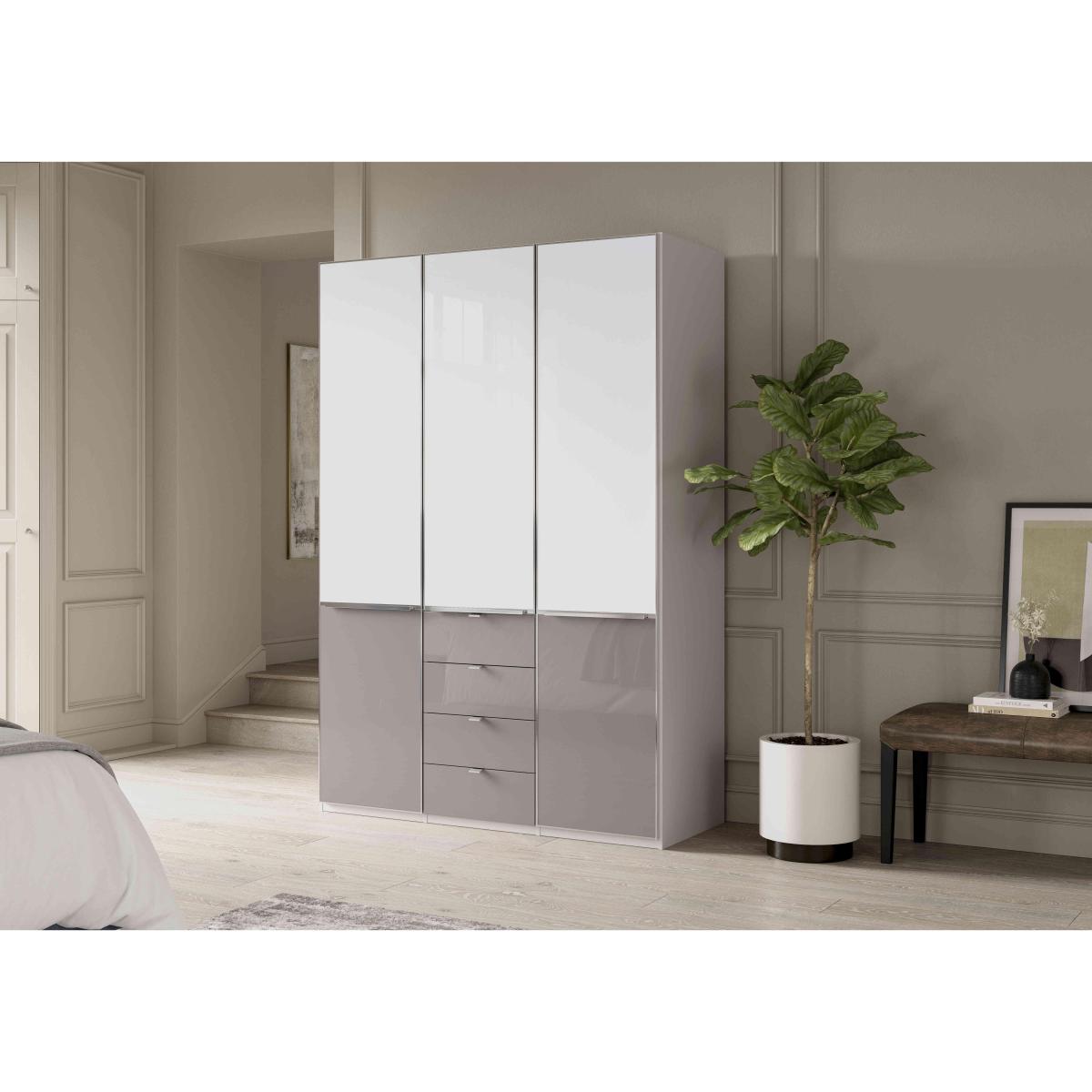 Sleek, minimal and very contemporary, the Santa Cruz collection of wardrobes has all the elegance of fitted furniture yet is conveniently freestanding. Designed and made in Germany by Wiemann, the collection features a choice of stunning hinged, combination and sliding wardrobes that start with a compact 2-door wardrobe and move up in size to an incredibly spacious 6-door option. Interiors are creatively designed to offer both hanging and shelf space. The look is striking – glass-fronted high-gloss frames finished in a choice of sophisticated colours with chrome-effect trim and drawer handles. The range also includes a statement bed frame with curved faux leather headboard chests of drawers and a bedside cabinet. This roomy combi wardrobe has versatile hanging space and four drawers so it’s the perfect all-in-one piece for a small bedroom. And that glass finish really brings the wow factor. Why you'll love it This 4-drawer 3-door combi wardrobe delivers the perfect mix of storage and style. Contemporary style with a striking glass finish. Exceptional value and quality. Freestanding wardrobe portability, sleek fitted wardrobe style. Practical combination of hanging space and drawers. In a wide choice of beautiful colours and finishes. Stylish chrome trim and linear door and drawer handles. Made in Germany by Wiemann and only at Furniture Village. This 150 cm 4-drawer 3-door combi wardrobe is part of the Wiemann Santa Cruz range. What you need to know 2 shelves and 1 hanging rail in each compartment. Interior has a silver grey stripe finish. Doors and drawers are soft-closing. Please note that the glass finish may show surface scratches under certain lighting. Assembled in your home free of charge. Assembly requires at least 8 cm clearance above the wardrobe and 4 cm at one side. WARNING!