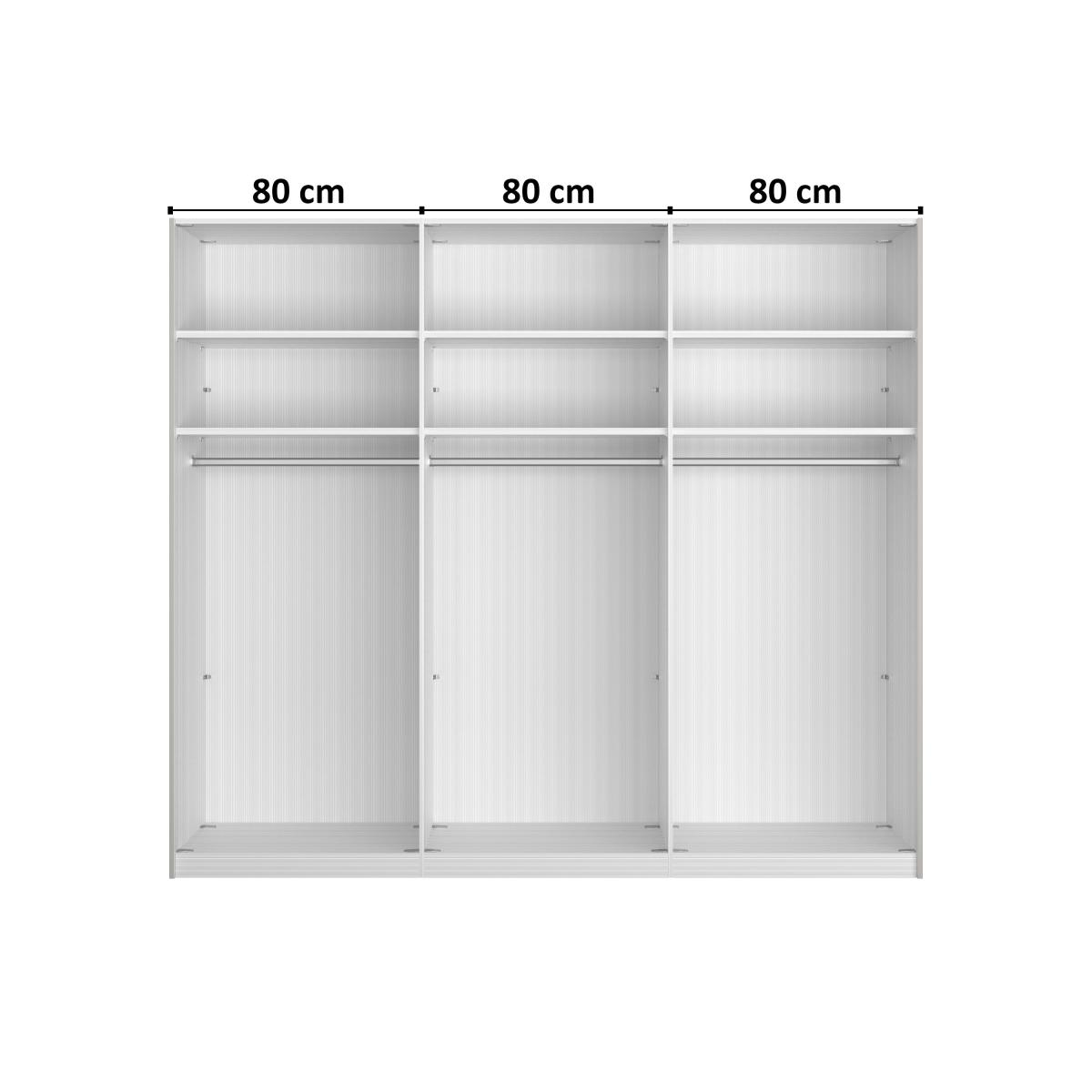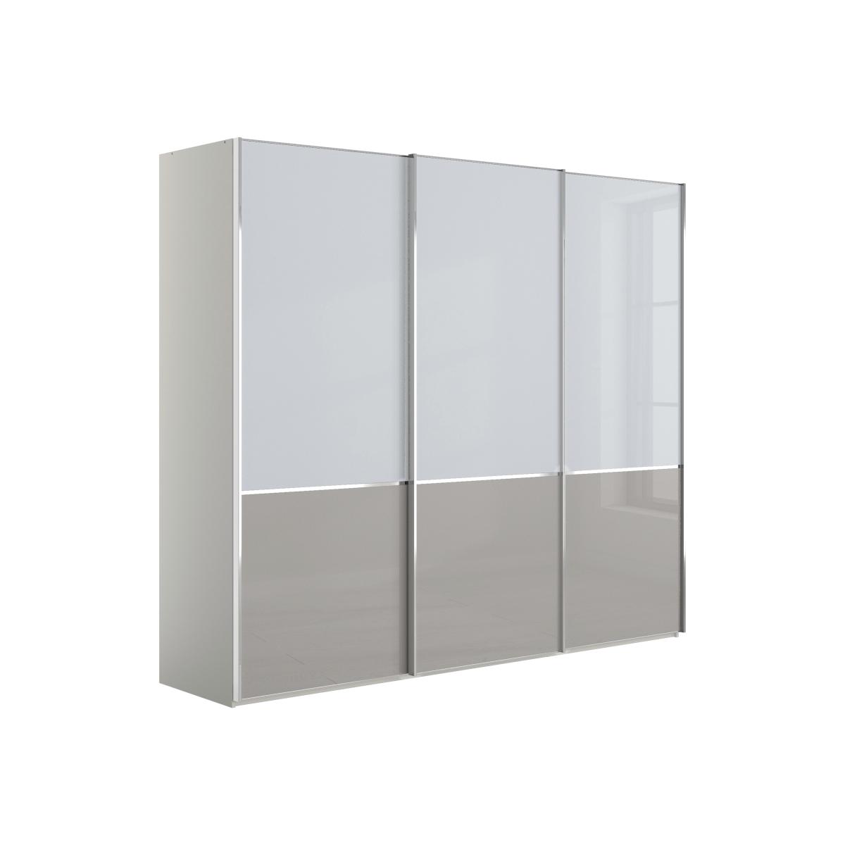 Sleek, minimal and very contemporary, the Santa Cruz collection of wardrobes has all the elegance of fitted furniture yet is conveniently freestanding. Designed and made in Germany by Wiemann, the collection features a choice of stunning hinged, combination and sliding wardrobes that start with a compact 2-door wardrobe and move up in size to an incredibly spacious 6-door option. Interiors are creatively designed to offer both hanging and shelf space. The look is striking – glass-fronted high-gloss frames finished in a choice of sophisticated colours with chrome-effect trim and drawer handles. The range also includes a statement bed frame with curved faux leather headboard chests of drawers and a bedside cabinet. Bring sleek and elegant style to your bedroom with this roomy 3-door sliding wardrobe from Wiemann. Its glass-fronted finish makes a subtle statement. Why you'll love it Chic and sleek, this 3-door sliding wardrobe has style and space aplenty. Contemporary style with a striking glass finish. Exceptional value and quality. Freestanding wardrobe portability, sleek fitted wardrobe style. Practical combination of hanging space and drawers. In a wide choice of beautiful colours and finishes. Stylish chrome trim and linear door handles. Made in Germany by Wiemann and only at Furniture Village. This 250 cm 3-door sliding wardrobe is part of the Wiemann Santa Cruz range. What you need to know 2 shelves and 1 hanging rail in each compartment. Interior has a silver grey stripe finish. Doors are soft-closing. Please note that the glass finish may show surface scratches under certain lighting. Assembled in your home free of charge. Assembly requires at least 8 cm clearance above the wardrobe and 4 cm at one side. WARNING!