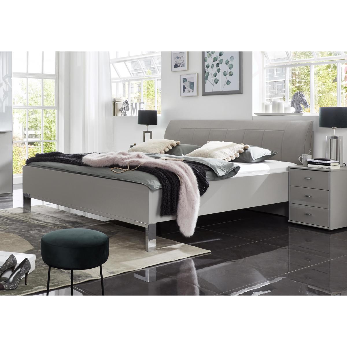 Sleek, minimal and very contemporary, the Santa Cruz collection of wardrobes has all the elegance of fitted furniture yet is conveniently freestanding. Designed and made in Germany by well-respected manufacturer Wiemann, the collection features a choice of stunning hinged-door, combination and sliding wardrobes that start with a compact 2 door wardrobe and move up in size to an incredibly spacious 6 door option. Interiors are creatively designed to offer both hanging and shelf space. The look is striking – high-gloss frames with glass-fronted doors and drawers, finished in a choice of sophisticated colours with chrome-effect trim and drawer handles. The range also includes a statement bedframe, chests of drawers and a bedside cabinet. Mattress sold separately. Sleek and minimal bedframe. Stylish curved faux leather headboard. Designed and made in Germany by Wiemann. Make a statement in sophisticated style with the Santa Cruz bedframe. This stunning bed features an integrated floor standing headboard that’s gently curved and upholstered in faux leather with modern stitching detail. The front feet are metal, modern and minimal. Available in double, king and super king sizes, the contemporary Santa Cruz bedframe is designed and made in Germany by Wiemann, furniture crafters of renown, and can accommodate any type of standard mattress. This stunning bedframe is part of the Santa Cruz range of bedroom furniture which includes a wide choice of beautiful glass-fronted wardrobes as well as chests of drawers and a bedside table.