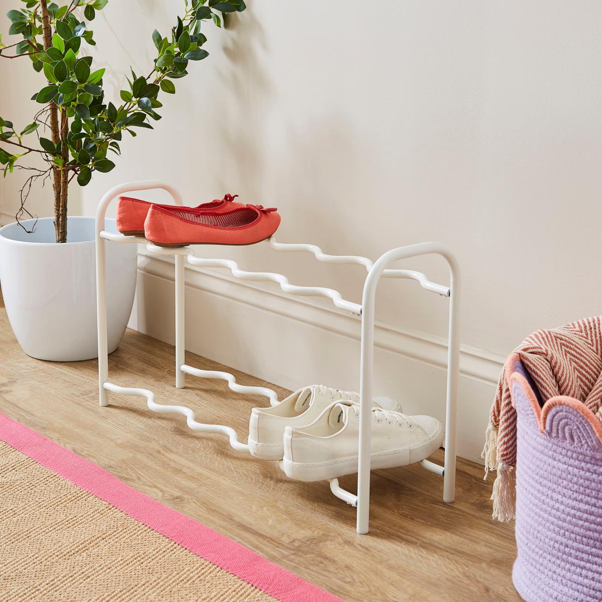 I love the wiggle 2 tier shoe rack for its compact design and versatility, making it perfect for both small and larger entrances. Its simple yet functional style suits contemporary, minimalist, and even shabby-chic interiors. It's a practical choice for organising everyday shoes, helping to keep clutter at bay without sacrificing style. For a more cohesive look, I’d recommend pairing it with neutral or pastel accessories for a soft, inviting entryway, or using it in a modern hallway alongside sleek storage solutions. To style around it, consider adding a small tray for keys and accessories on top or some decorative baskets beneath to optimise space and create a tidy, streamlined look.