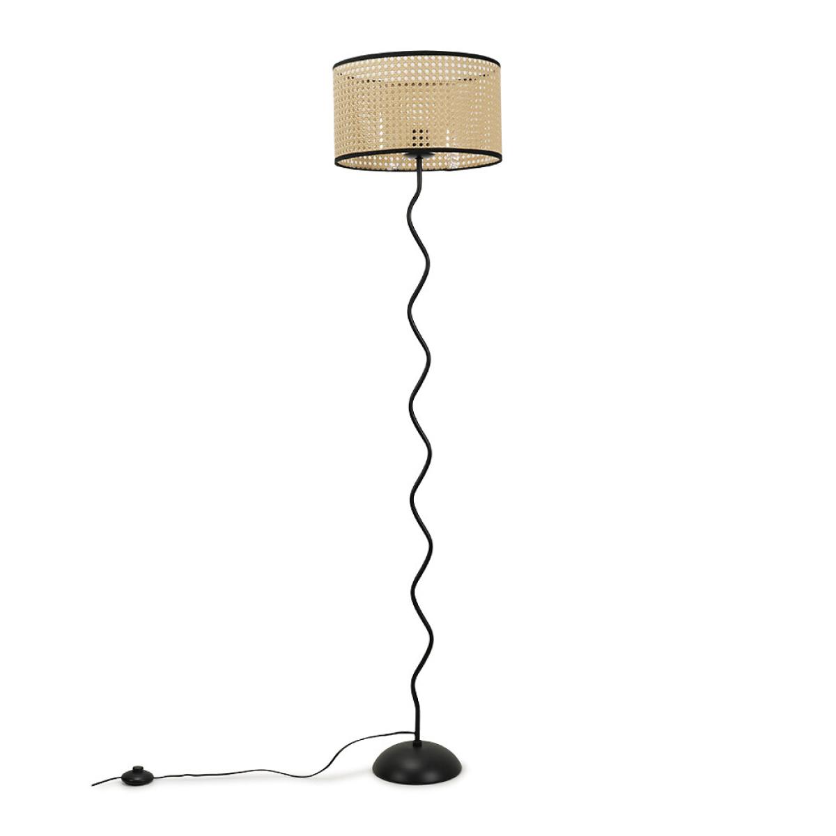 Wiggle Black Metal Floor Lamp with Cane Shade