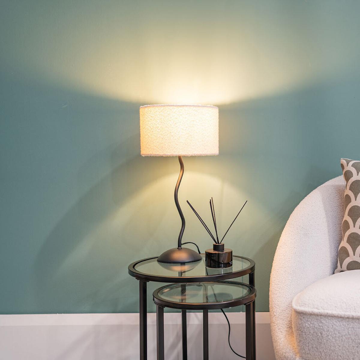 Wiggle Black Metal Table Lamp with Boucle Shade