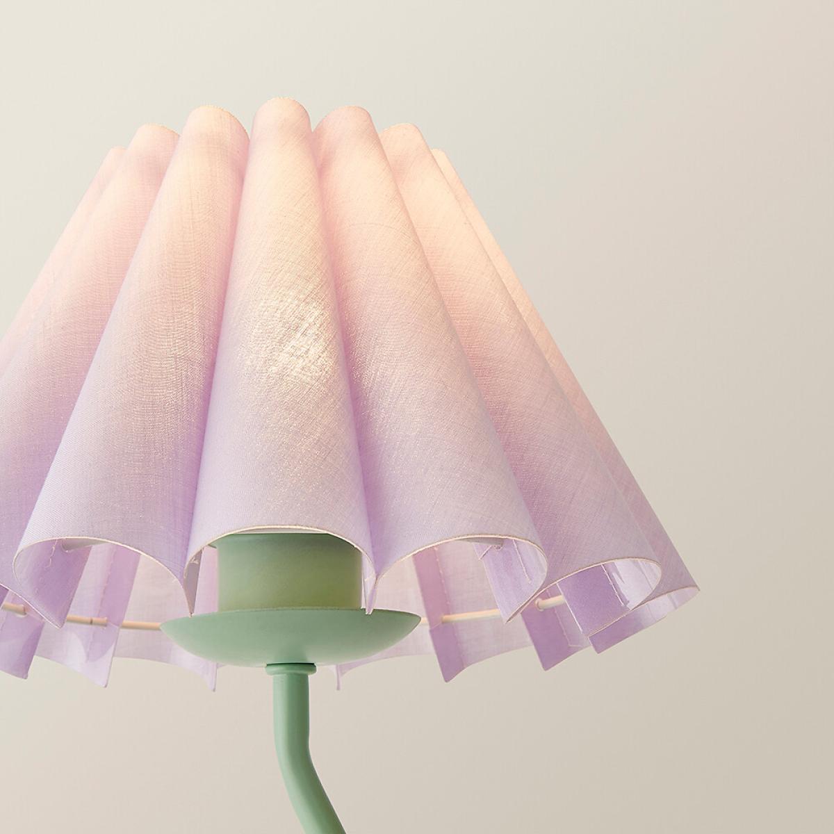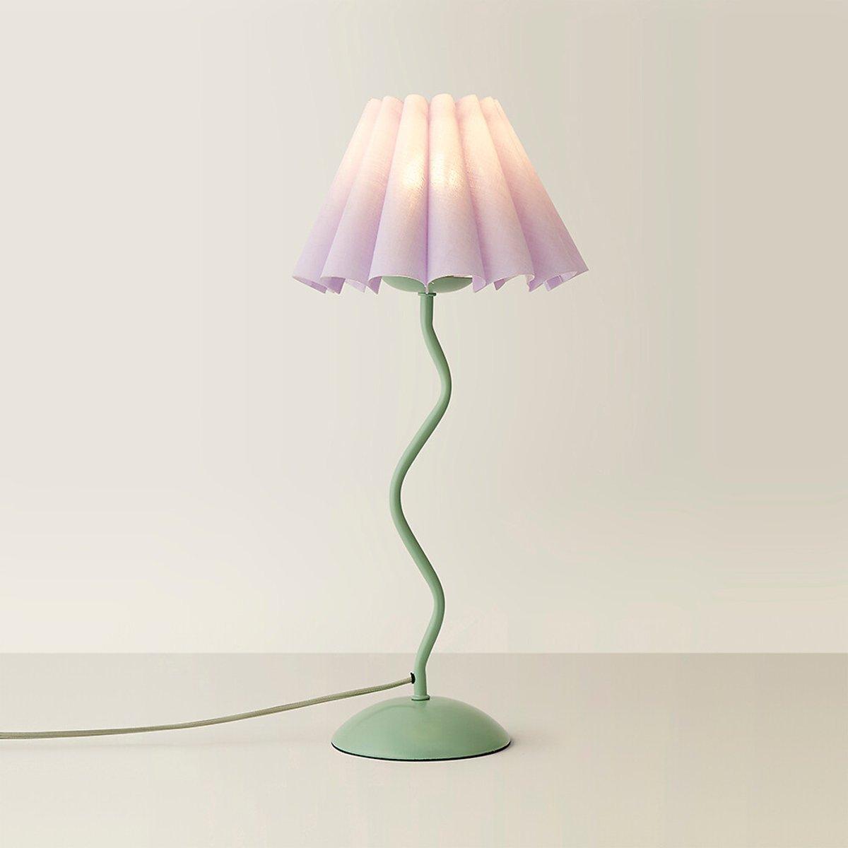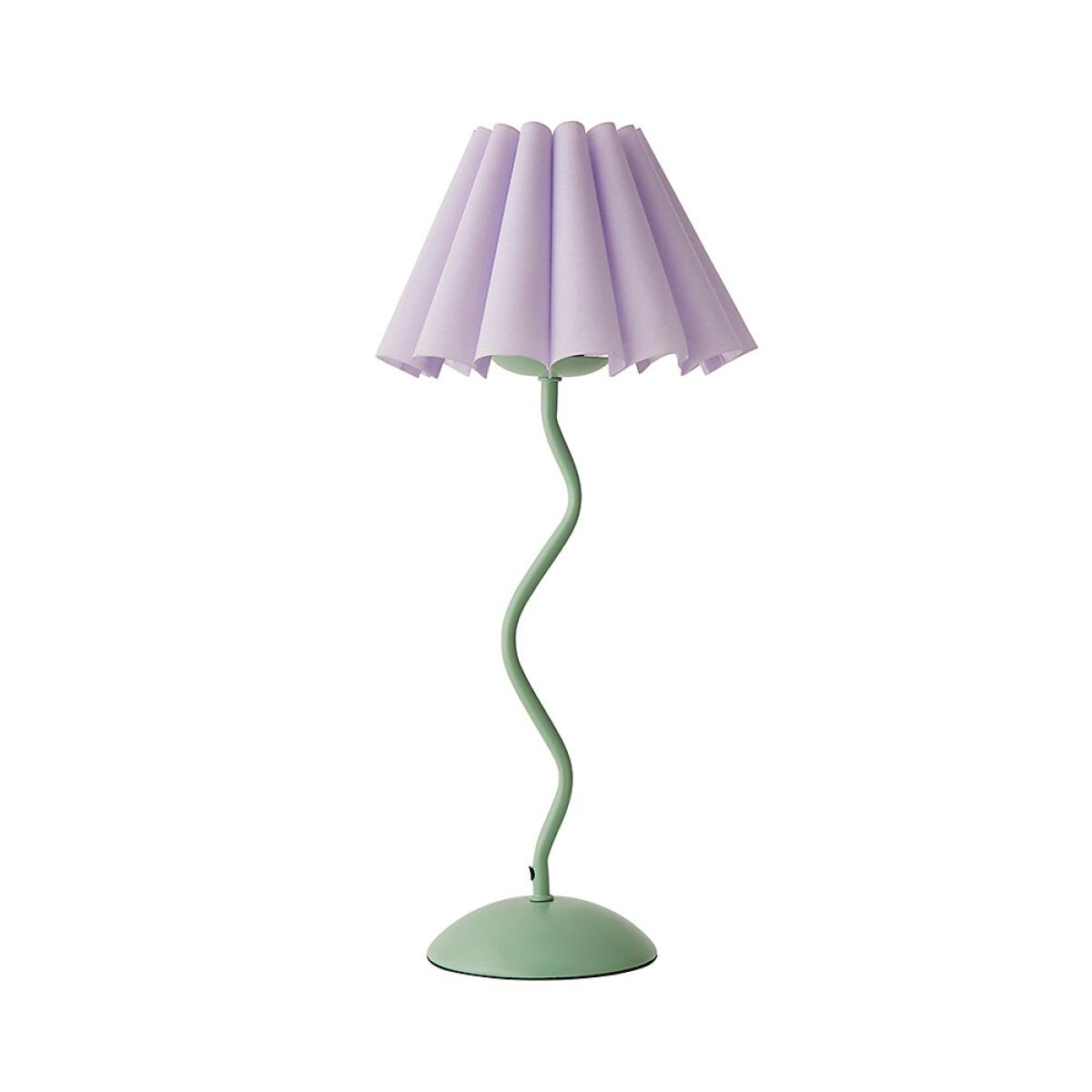 This pastel table lamp is wiggling its way into your heart! With its fluid design, pleated shade, and colour-matched cable, it's a playful and stylish choice for any room. The unique shape and soft lilac shade bring fresh energy to your space, while the coordinated cable completes the look. Perfect for a living room or bedroom, it's the ideal way to add personality and charm to your decor, all while casting a soft, warm glow.