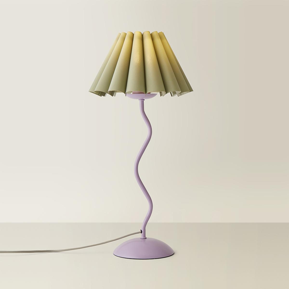 Wiggle Pastel Metal Table Lamp with Sage Pleated Tapered Shade - Purple