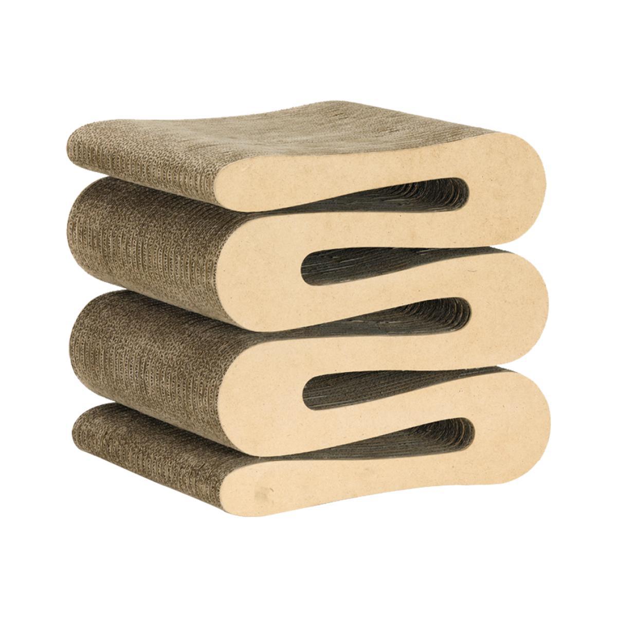 Designed as part of his 1972 furniture series, ‘Easy Edges’, architect and designer Frank Gehry successfully achieved a new aesthetic dimension to everyday materials with the visually striking Wiggle Stool. The Wiggle Stool was born after discovering that corrugated cardboard layered enough times in alternate directions builds strength. The edges of this design are made of natural look hardboard to add durability to the organic shape. Vaguely reminiscent of traditional African stools, this statement-making design will enliven every interior scheme.