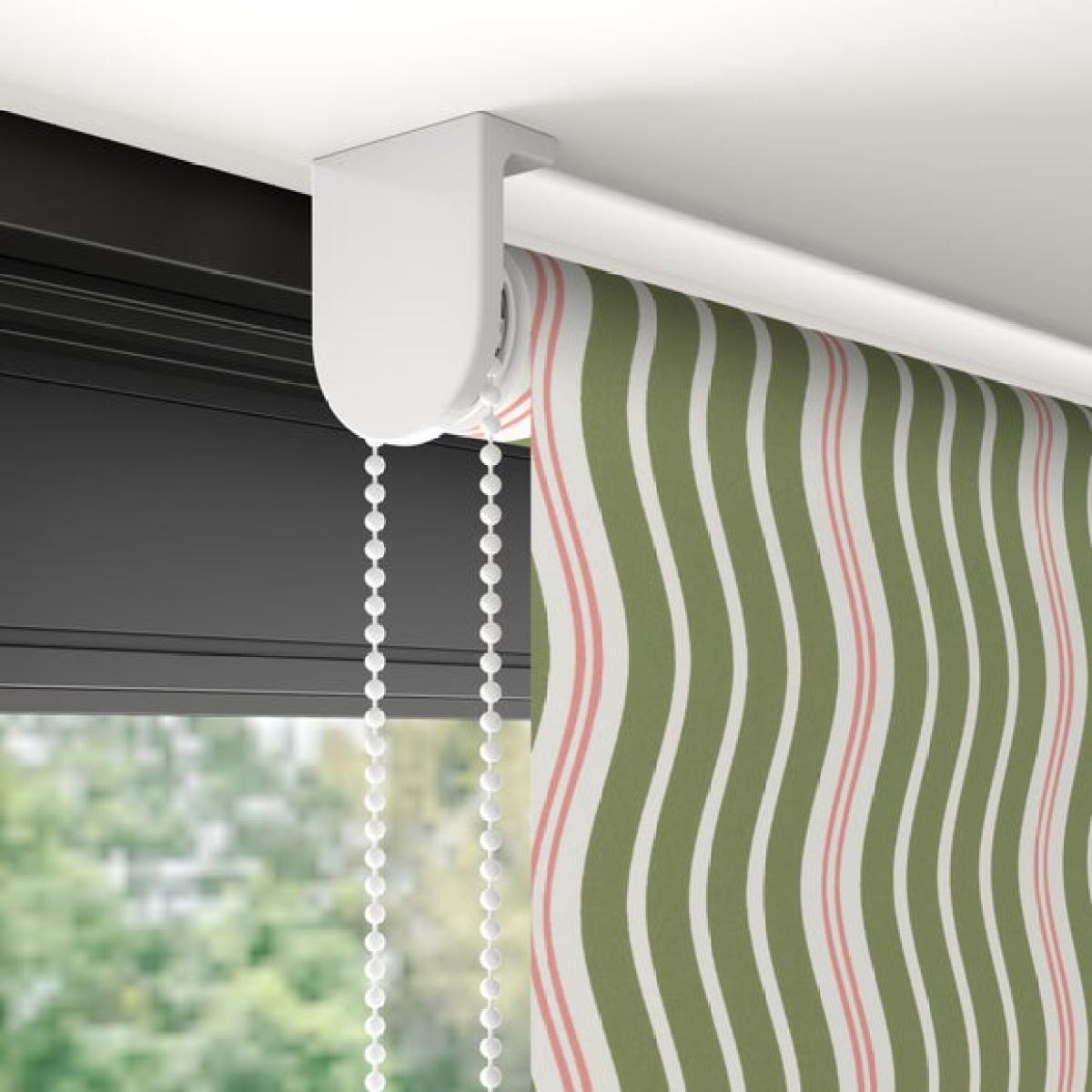 Get 15% off selected Made to Measure blinds when you buy Made to Measure curtains and blinds together. *Use code M2M15OF F (Ts & Cs apply). * Curved stripe design on neutral background * Available in different colourways * Blackout * Premium polyester composition * Choose fitting type, chain side, chain colour, and roll direction * Supplied with all fixings for simple installation Refresh your space with the playful, modern, and stylish Wiggle Stripe Blackout roller blind. Available in a range of colourways, the fabric features a curved stripe print on a neutral background, bringing the perfect pop of colour to your window. Made from blackout lined premium polyester, it offers enhanced light blocking and privacy, making it a practical choice. You can choose which side you'd like the operating chain, fitting type, roll direction and chain colour. Simple to install, the blind comes with all the necessary fixings. Please note: The actual blind fabric will be approximately 35mm narrower than the overall blind width, this is to accommodate the brackets and operating mechanism.