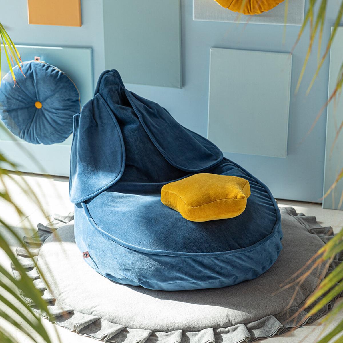 I love the Wigiwama beanbag bunny for its inviting, plush velvet texture and deep blue hue, making it a versatile statement piece. It works exceptionally well in casual living spaces, children’s rooms, or even cosy reading nooks, adding comfort without sacrificing style. For styling tips, pair it with minimalist furniture for a contemporary look, or add colourful cushions and throws for a more playful vibe. To keep it looking fresh, opt for a removable, washable cover and place it on a neutral-toned rug or flooring to let the velvety finish and rich colour stand out. It's perfect for creating a laid-back, inviting corner in any interior.