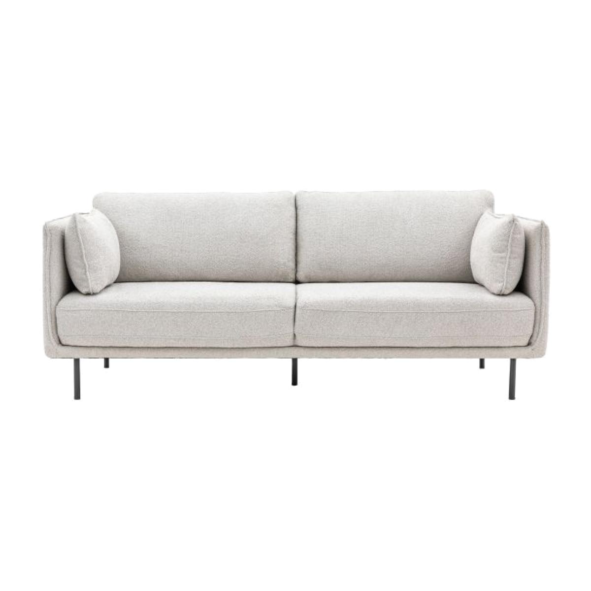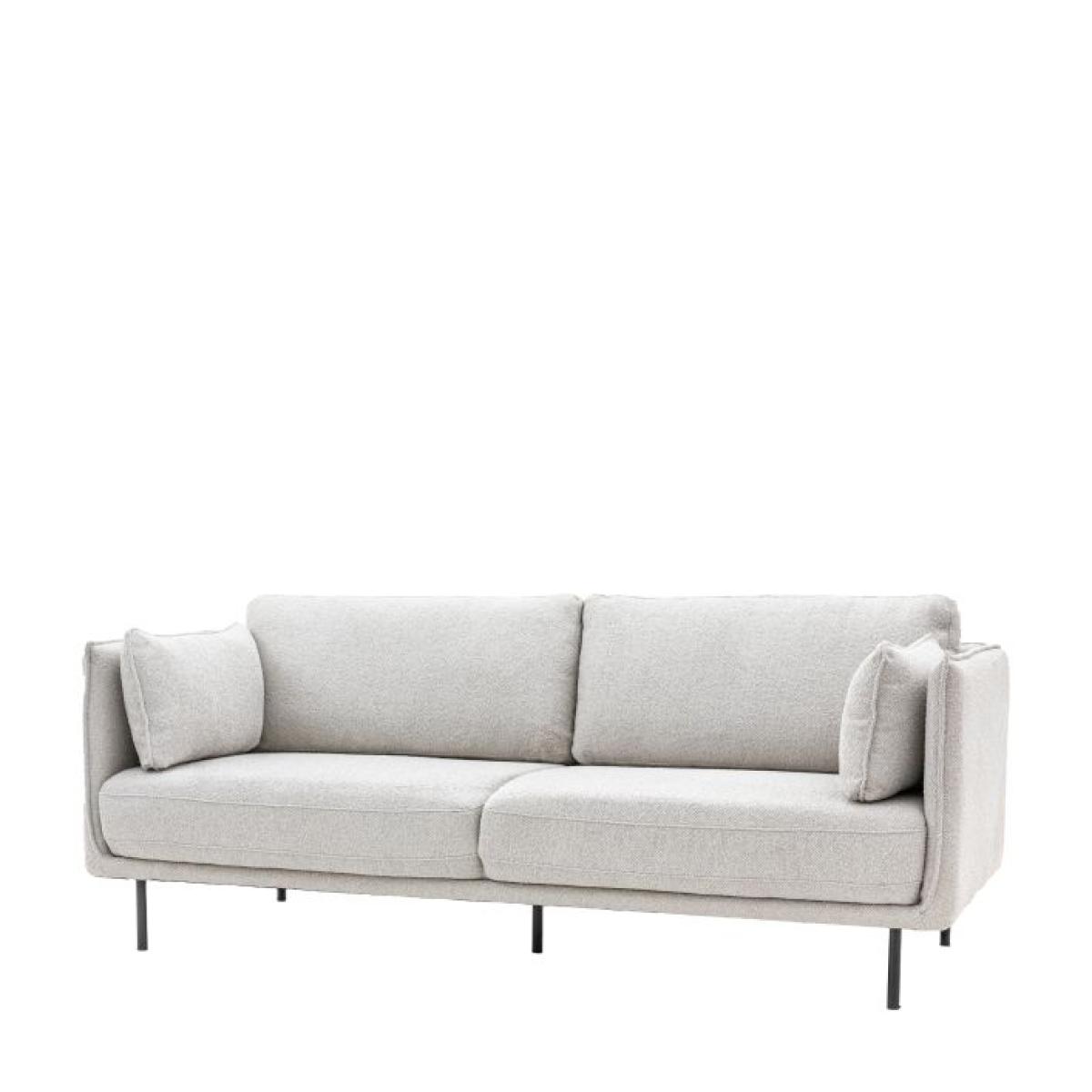 Offering a sleek contemporary look, this stylish sofa is fully upholstered in a lovely natural coloured boucle, with black metal legs perfectly complementing the design. The slim arms feature stitch seam detailing which is echoed on the side cushions. Also available in other colours.