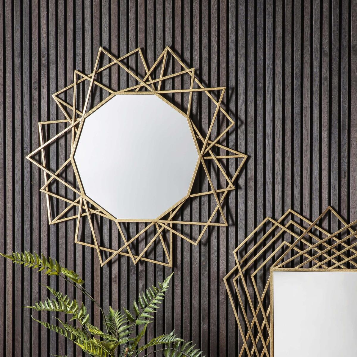 I’m a fan of that gold geometric mirror for its ability to lift a space without overwhelming it. The crisp metal lines work especially well in contemporary or Art Deco-inspired interiors, but it can also add a slick, modern edge to more traditional rooms. Try hanging it above a slim console in a hallway to bounce light into darker corners, or cluster it with a couple of small framed prints for an easy gallery-style vignette. Its warm metallic finish complements deep blues, forest greens or charcoal walls, while pairing it with natural timber furniture keeps the look grounded and inviting.