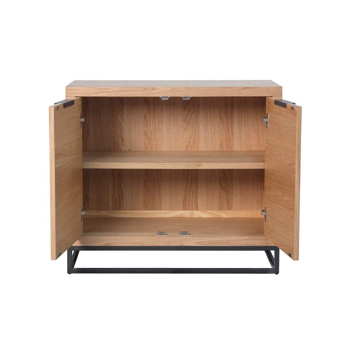 Designed to satisfy your need for storage space without compromising on quality and style, this sideboard will be a useful addition to your home. Crafted using wood and steel, it has a sturdy, enduring frame. This sideboard has an elegant, radiant oak finish that will add character and warmth to your home. The compact design offers lots of storage space without taking up too much room itself. Striking storage unit with a classy and stylish design. Has a strong and sturdy frame, and is bound to last through generations of use. Has a powder coated steel bottom frame with a sleek painted graphite finish. 2 cabinet doors with discrete top mounted bar handles. Has internal shelves. Adjustable feet that offer maximum stability and support. Look out for more items from this collection.