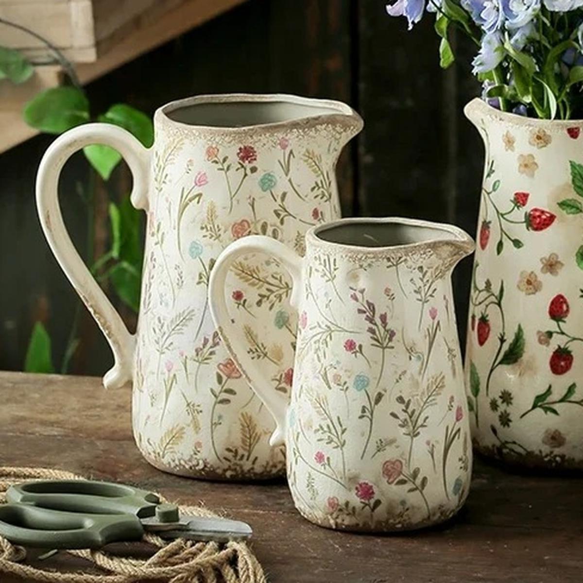This Wild Flowers Ceramic Vase Jug with Handle is a beautifully crafted piece that exudes a rustic, countryside charm. Featuring a delicate design of hand-painted wildflowers in soft, natural tones, this jug brings a touch of nature's beauty into your home. The sturdy ceramic construction is complemented by a practical handle, offering both style and functionality, whether used as a decorative item or for holding fresh or dried flowers. Its timeless, pastoral aesthetic makes it an ideal addition to any room, creating a peaceful and inviting atmosphere.