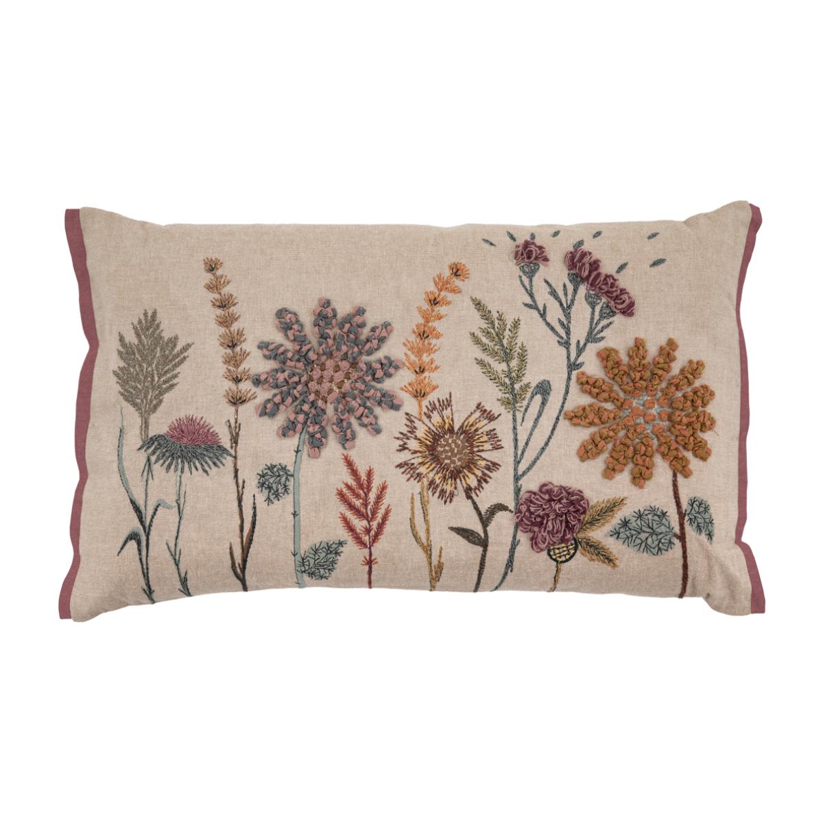 This cushion is a great choice for adding a touch of nature-inspired charm to a variety of interiors, from rustic and boho to modern coastal spaces. I love how it mixes muted tones with vibrant embroidery, making it versatile for both neutral sofas or accent chairs. For styling, consider pairing it with textured throws or other embroidered pieces to create a layered, relaxed look. Practical tip: its size and pattern make it ideal for creating visual interest on larger sofas or beds without overwhelming the space. Overall, this cushion brings a cosy yet stylish vibe that can effortlessly elevate your interior.