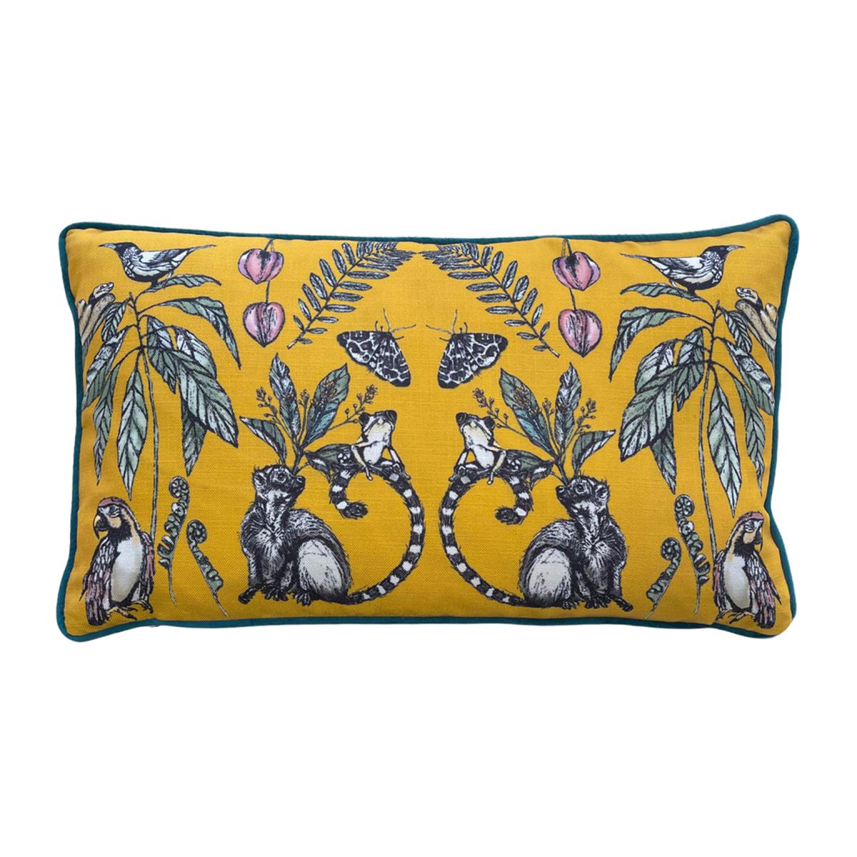 Wild Mirrored Creatures Digitally Printed Piped Cushion 30 x 50cm - Yellow