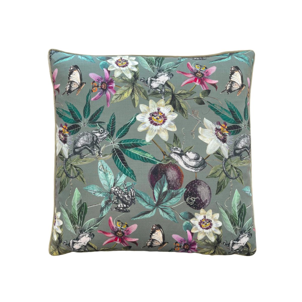 Wild Passion Creatures Digitally Printed Piped Cushion - Sage / Polyester