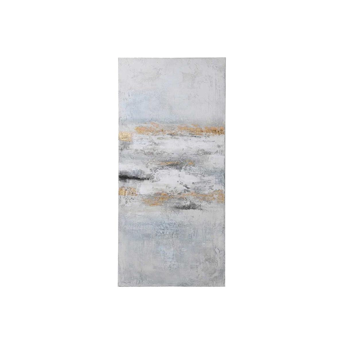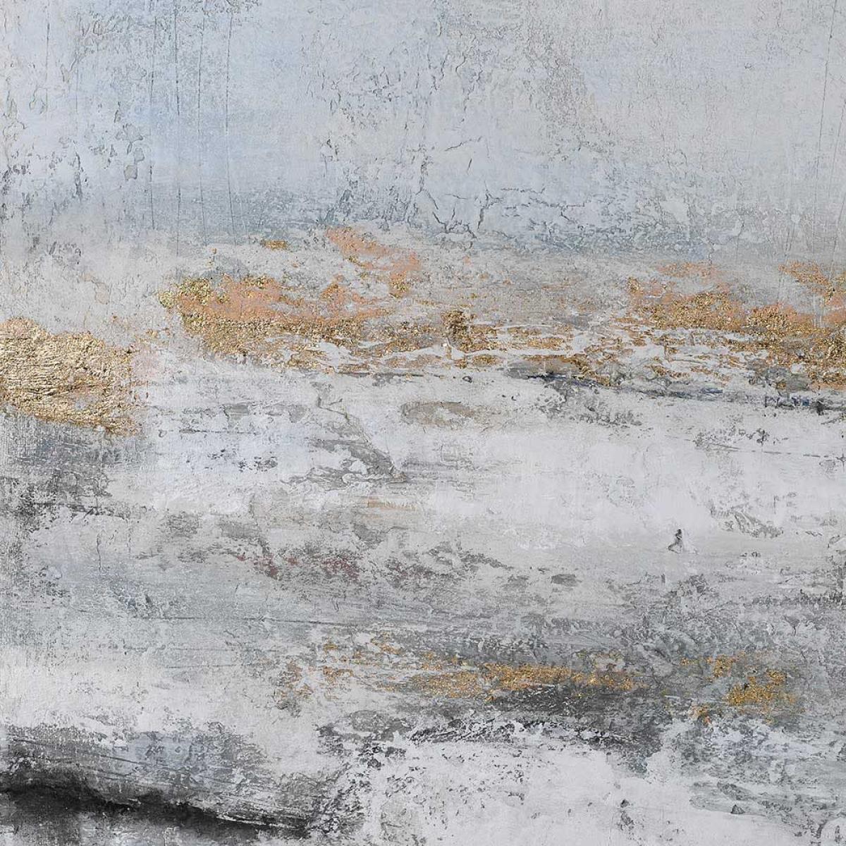 Add interest to plainnbsp;walls with the Wild Sands Canvas, an abstract picture featuring grey tones with a gold splash.