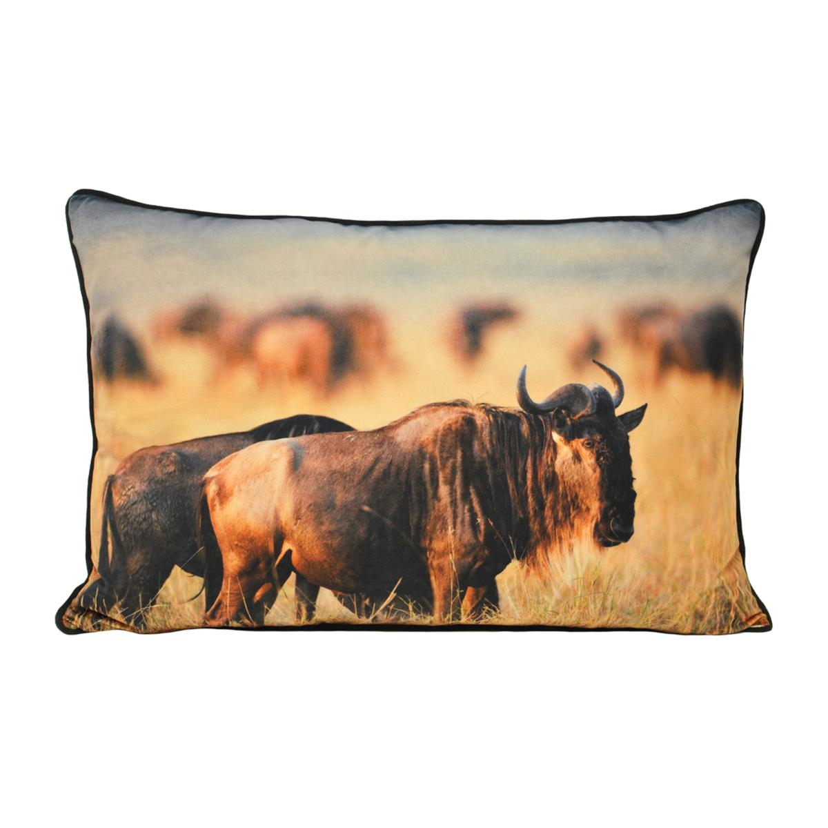 Featuring a photographic print of wildebeest in the wild, this cushion is neutrally coloured so will compliment a variety of interiors.