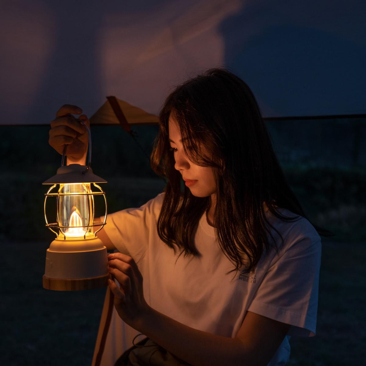 This LED Camping Lantern is compact and lightweight (just 479g) making it suitable for a multitude of indoor and outdoor uses, such as camping, fishing, hiking, emergency lighting in a power cut, desk lamp, etc. Made from metal and plastic and finished in Moon Rock White, the lantern sits on a bamboo base. It is IPX4, water resistant. With a fast charging time of around 3 hours, it provides a long run time of between 6 and 200 hours. It has a useful power bank function for charging your i. Phone, Ipad, etc.450 lumens at 5700. K white colours provides sufficient light for outdoor activities. This can be dimmed to 350 lumens at 2200. K warm colour for a cosy atmosphere. The carry handle could also be used to suspend the lantern if required.