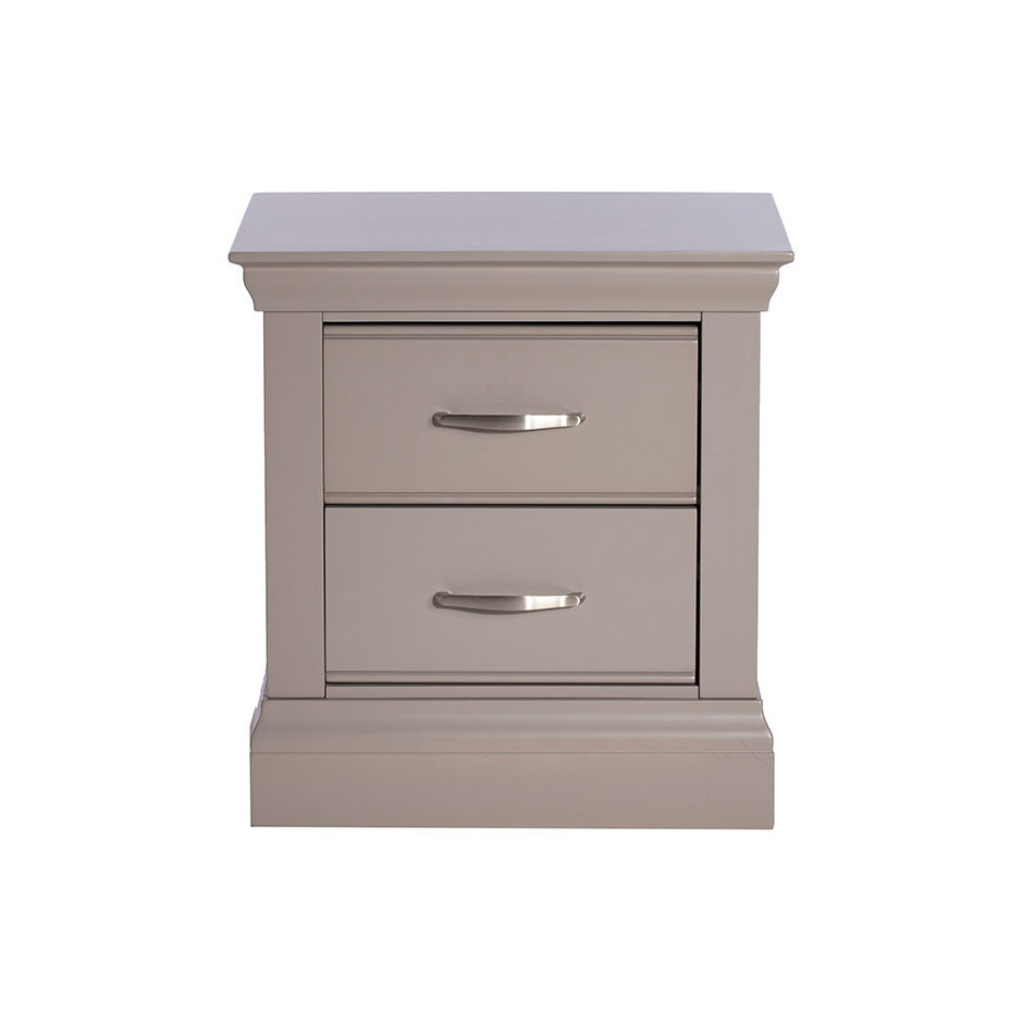 Add a touch of modern elegance to your bedroom with the Willersey range. Made from wood, the Willersey 2 Drawer Bedside Chest boasts metal handles and a chic painted grey finish. Also available in stone;Two spacious drawers make this chest a practical addition to your bedside.