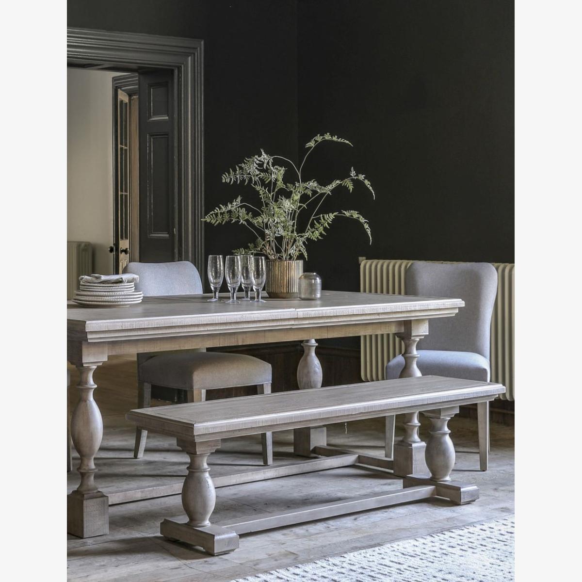 Offering an updated classic look, this stunning dining bench is crafted from North American pine solids and veneers where practical, with the clever use of a mill saw giving characteristic features of cross sawn timber to create a tactile, dramatic finish. The bench is perfect paired with the matching dining table, and other matching pieces are also available. Offering an updated classic look, this stunning dining bench suits a range of home interiors.