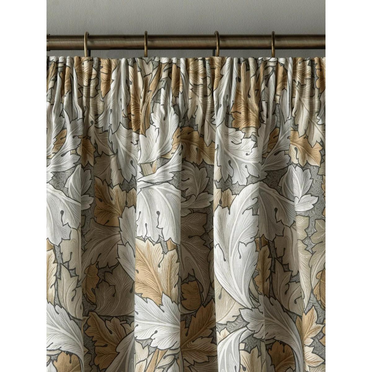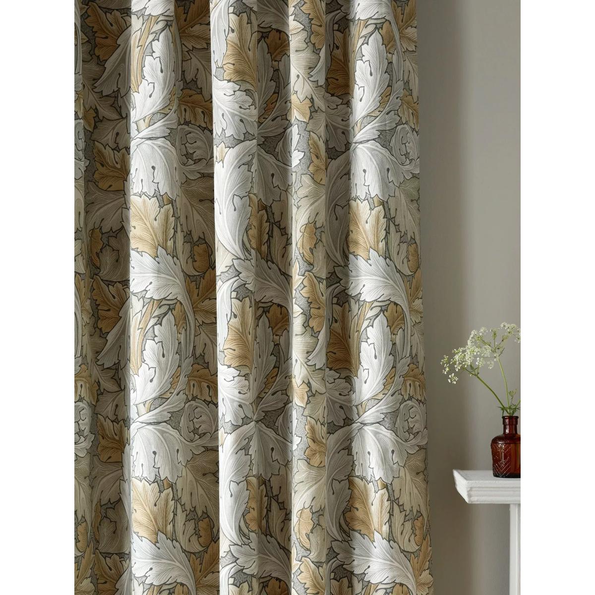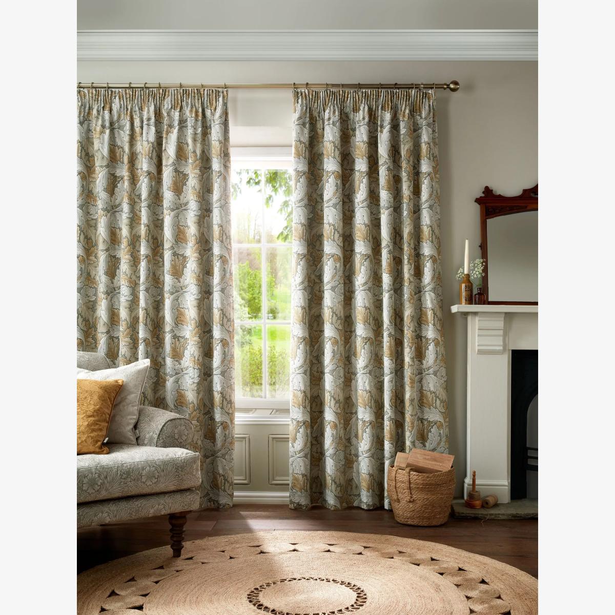 Acanthus leaves decorate many of Morris's designs and they take on a central role in his Acanthus pattern. This classical motif lent itself well to repeating patterns and Morris believed that the larger-scale designs particularly suited smaller rooms, creating a more restful atmosphere compared to denser, smaller patterns. The use of soft tonal shades further enhances the design, infusing it with a sense of gentle movement. Warm in winter, cool in summer As the blackout lining on these curtains blocks out sunlight they help keep your room cool as well as dark. This lining also adds an extra layer of insulation to the curtains, giving them the added benefit of being thermal. They protect against both heat loss and heat gain, regulating the temperature of your room so you’re kept warm in winter and cool in summer. Choosing the right size These curtains can be hung with a pole or track using curtain hooks (not included). There are three hook positions on the heading, allowing you to choose how your curtains sit against the track or pole. For example, if you're using a track you may want to use the middle or lower row of hooks to cover the track, whereas if you're using a pole you may want to use the top row of hooks so the curtains hang below the rings. The specified drop is taken from the top row of hook pockets to the bottom edge of the curtain. The width stated indicates the size of one curtain panel when laid completely flat. This pack contains two panels, and the track/pole length we've recommended allows for the two panels to be gathered when the curtains are drawn. For a fuller look, increase the curtain width. One pair of 162cm width curtains will fit a curtain track/pole size of 133-162cm One pair of 223cm width curtains will fit a curtain track/pole size of 182-223cm Do you need a curtain pole/track and accessories? Shop here.