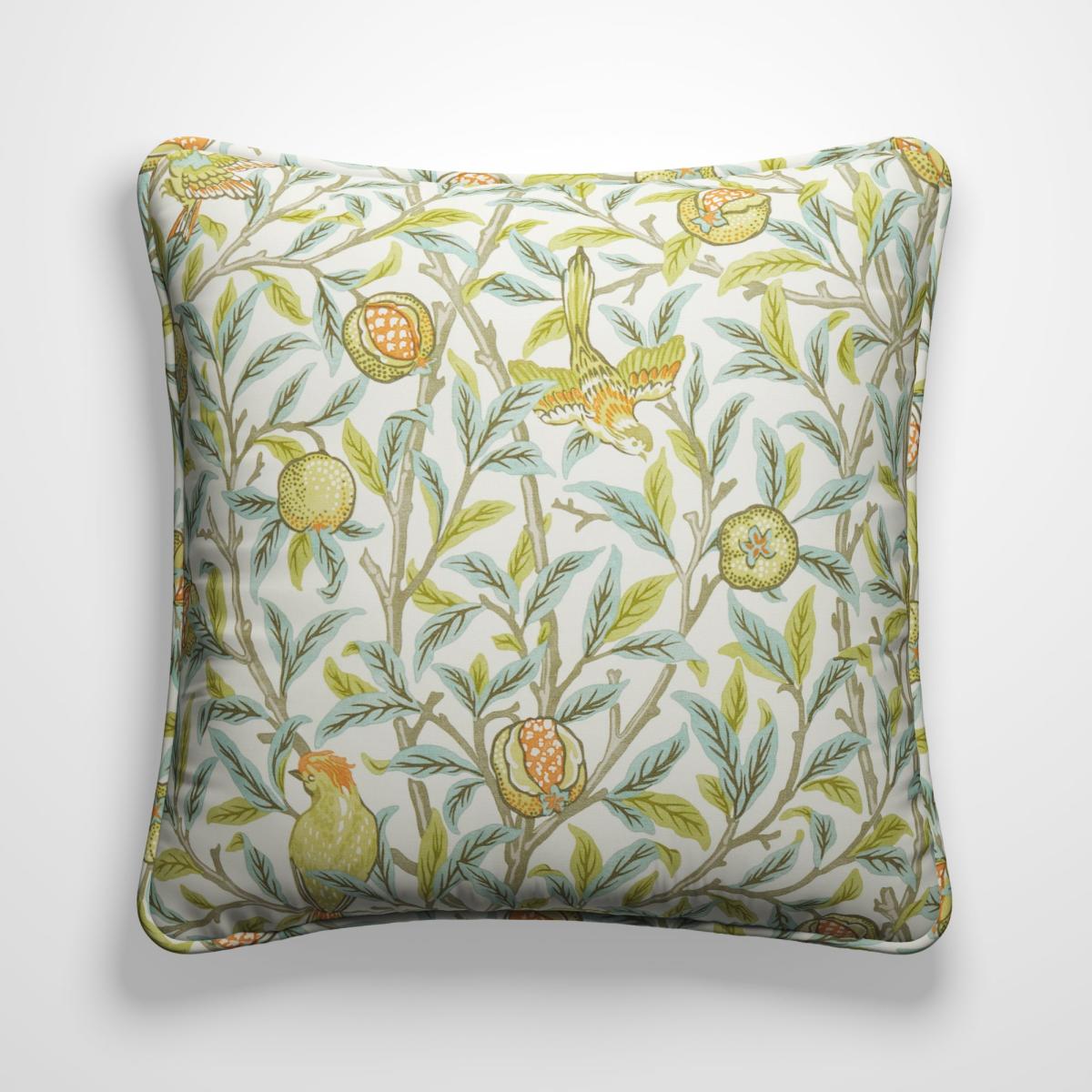 A beautiful and dynamic Morris design featuring perching and swooping birds against a network of foliage and an abundance of ripe pomegranates – some whole, some bursting open and others getting pecked at by diving birds. The inspiration for this piece was William Morris’s much earlier pattern, ‘Fruit’, which similarly depicts luscious pomegranates amongst branches, leaves and blooming pomegranate flowers. With nature as the focus, this vibrant and whimsical design is a fine example of Morris’s characteristic style. Pairing iconic William Morris patterns with excellent British manufacturing, our Made to Order service brings you a selection of beautiful William Morris At Home designs, with exclusive colourways to Dunelm, allowing you to create a uniquely individual look in your home. Available in both a plain and piped design, this cushion cover can be paired with our matching Made to Measure Curtains or Roman Blinds to give your home, office or commercial space a beautifully co-ordinated finish. Book an appointment with one of our expert consultants who will guide you through the process of creating your very own made to order cushion cover.