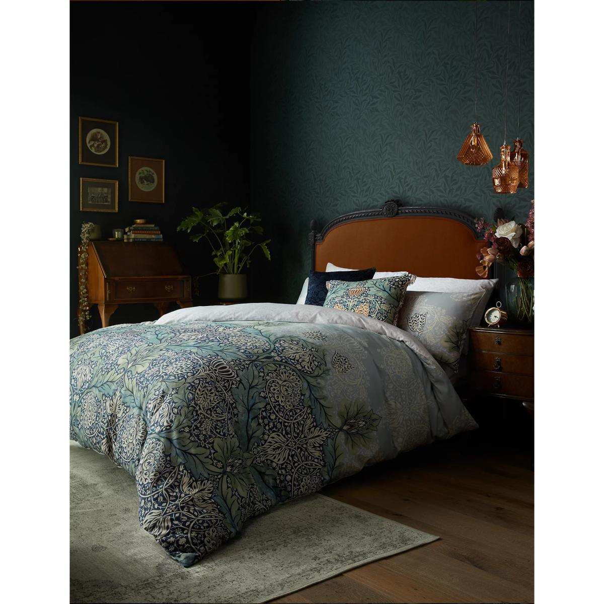 I love the William Morris at Home Avon chintz bedding set for its timeless pattern and rich indigo hue, which adds a classic yet vibrant touch to a bedroom. It works particularly well in traditional or vintage-inspired interiors, but also pairs beautifully with more contemporary or eclectic styles when layered with textured throws or cushions. For styling, consider keeping the rest of the bedding streamlined to let the pattern shine, and introduce natural textures like wood or woven accessories for warmth. This bedding set is versatile enough to complement a neutral palette or add a focal point in rooms that feature darker, moody tones-making it a practical choice for creating cosy, well-curated bedrooms.