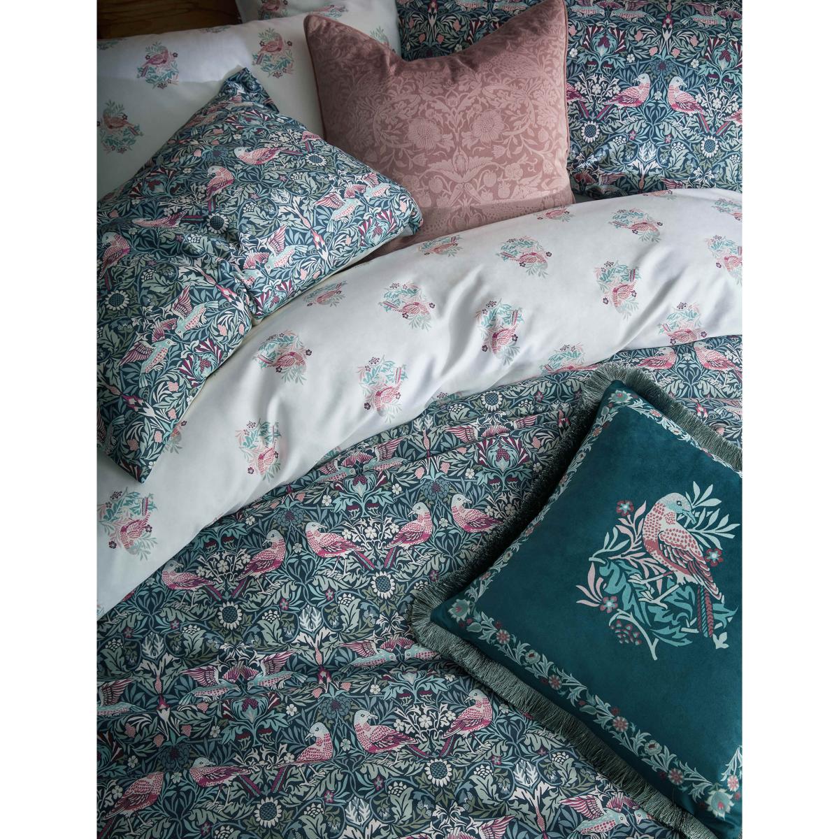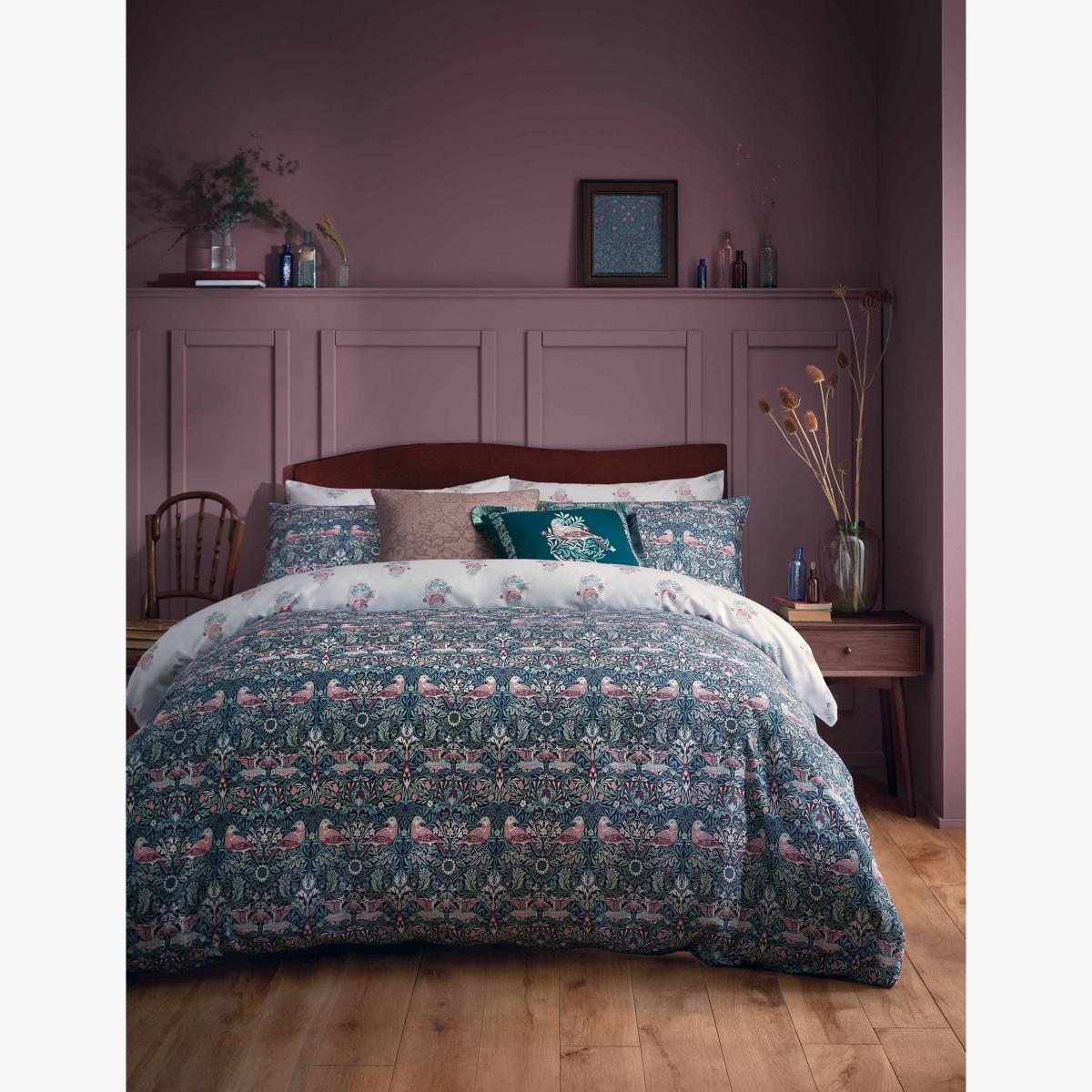 William Morris At Home Pure Cotton Sateen Bird Bedding Set - 6FT - Soft Cherry, Soft Cherry