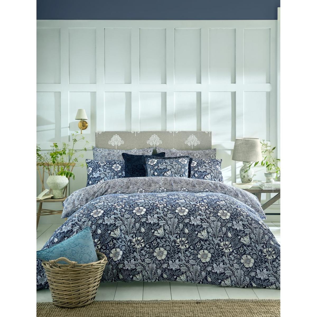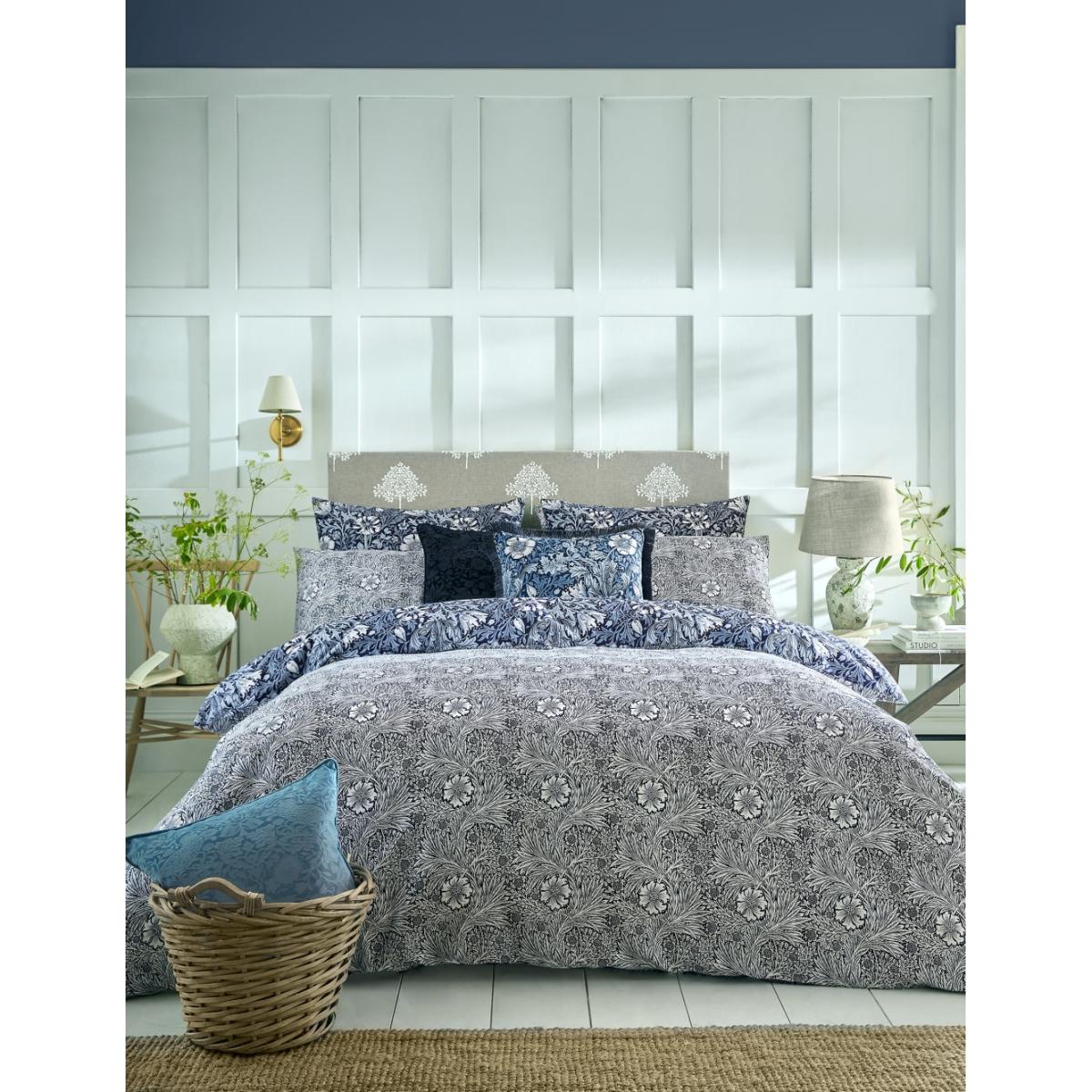 William Morris At Home Pure Cotton Sateen Compton Bedding Set - 6FT - Blue, Blue