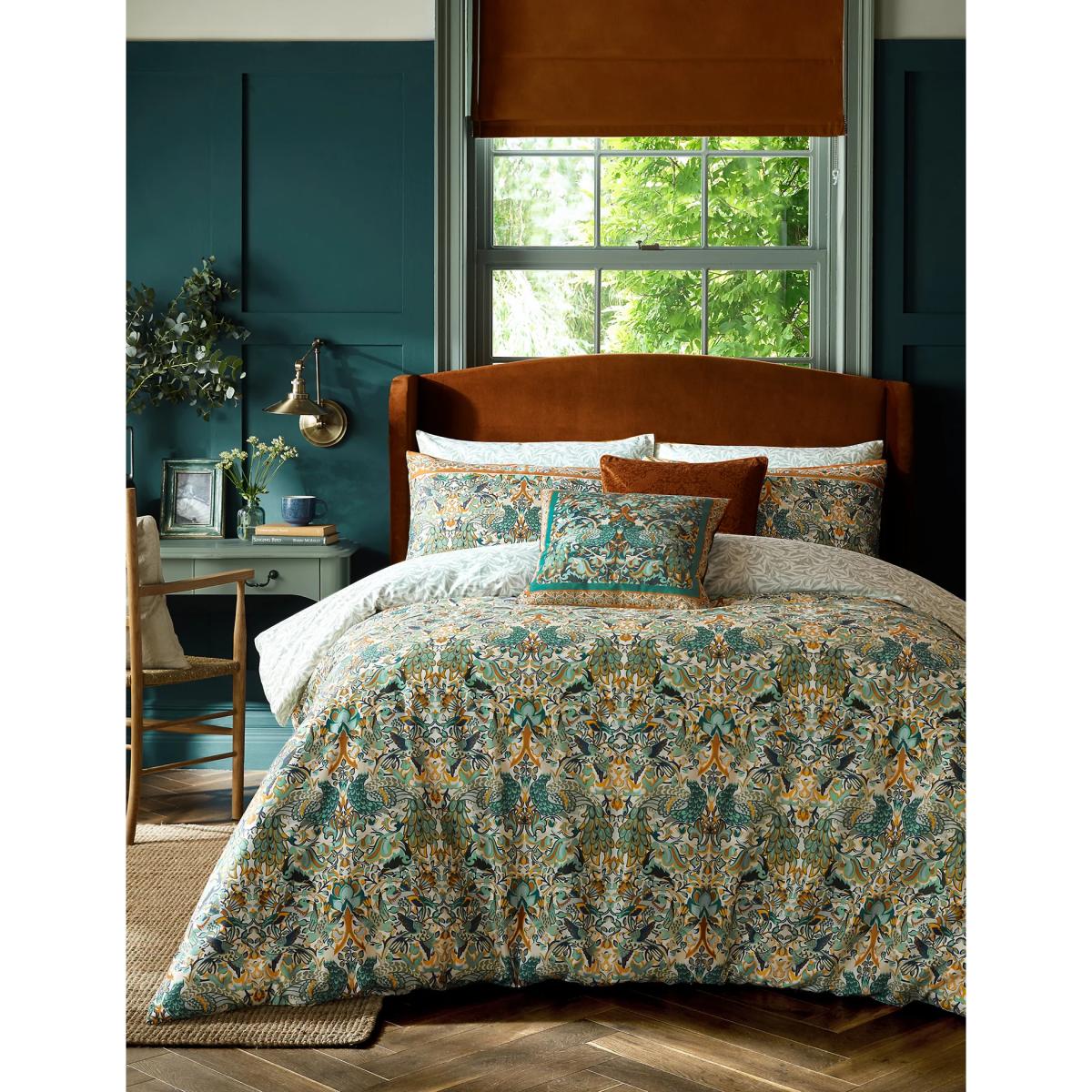 William Morris At Home Pure Cotton Sateen Peacock & Bird Bedding Set - DBL - Saffron, Saffron