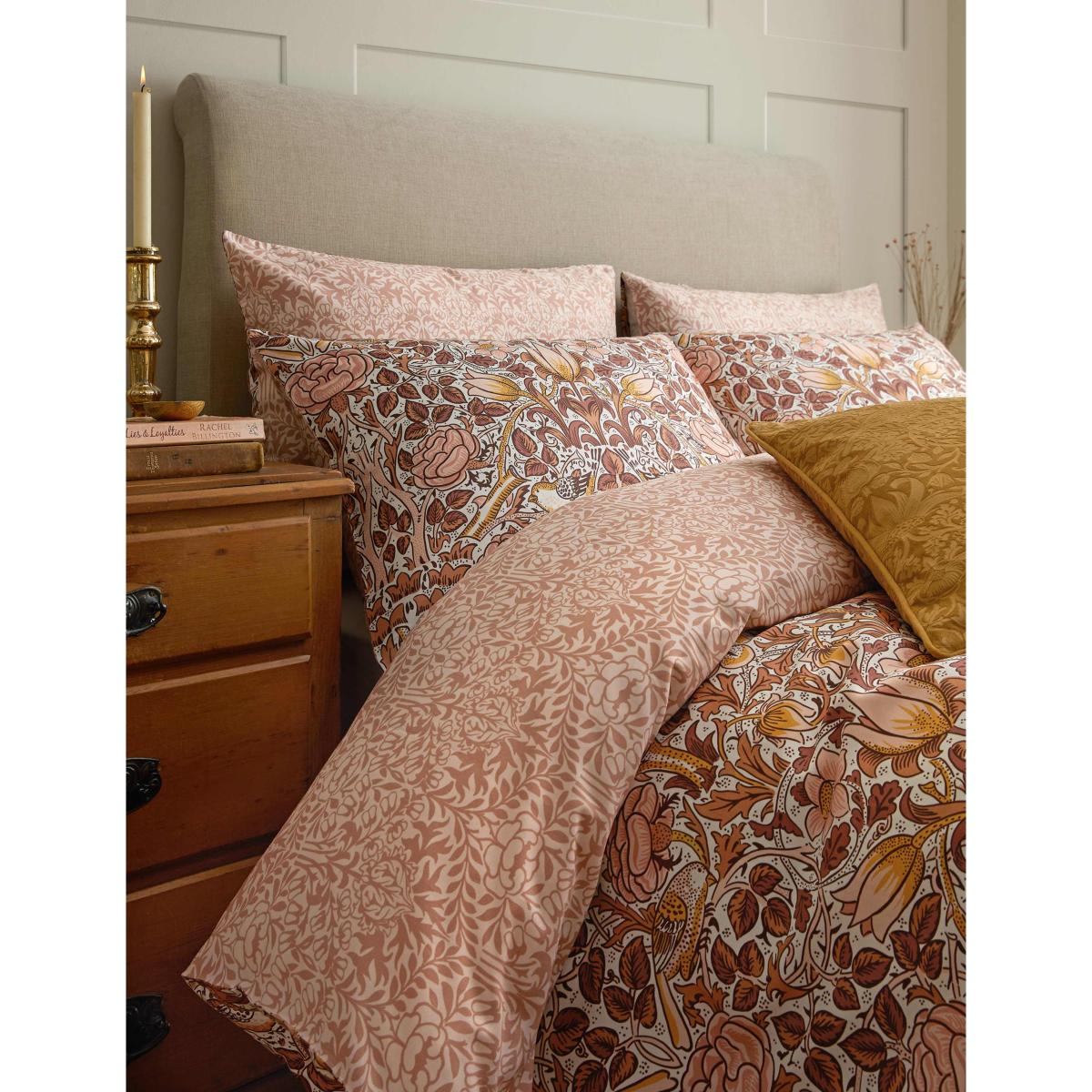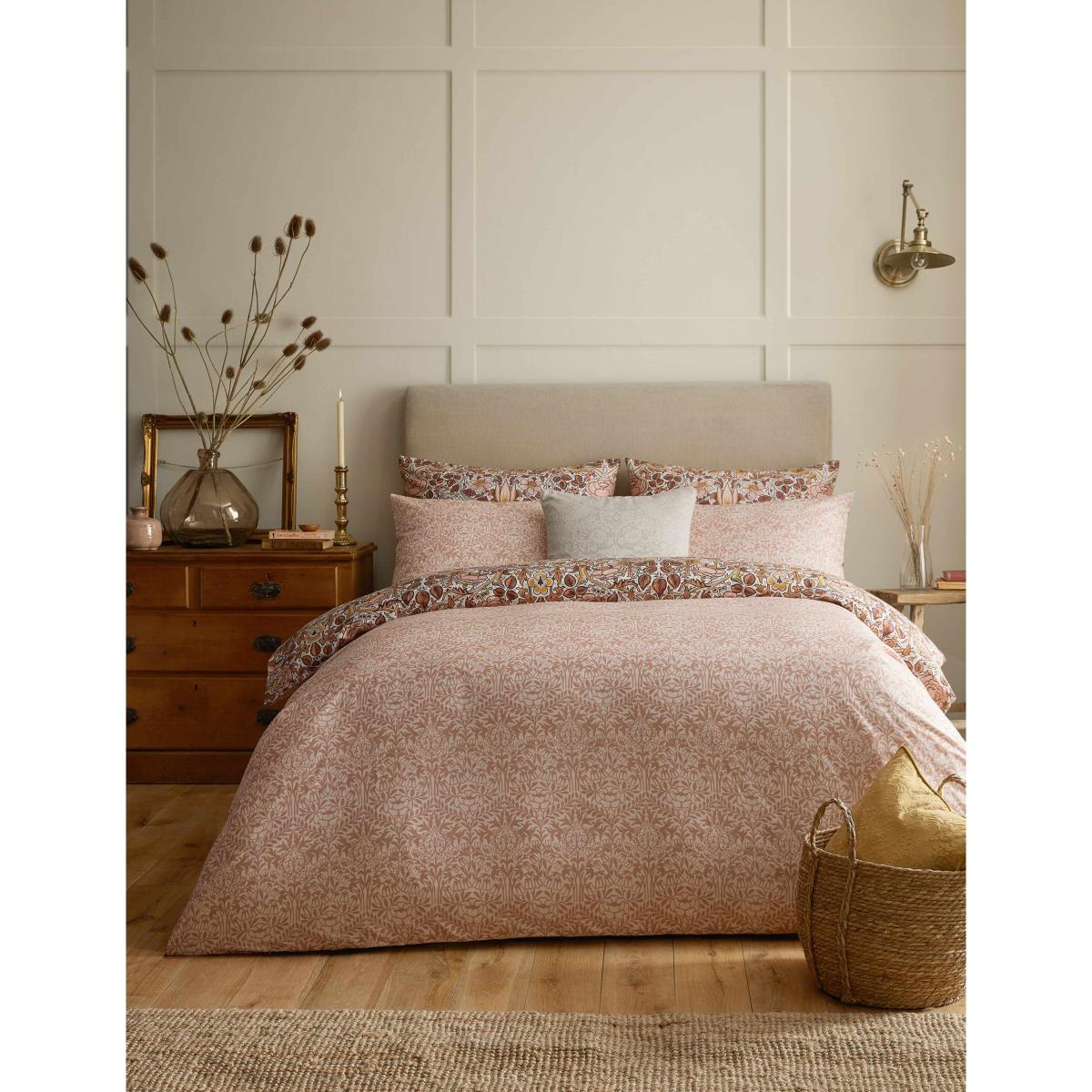 William Morris At Home Pure Cotton Sateen Rose Bedding Set - 6FT - Cinnamon Blush, Cinnamon Blush