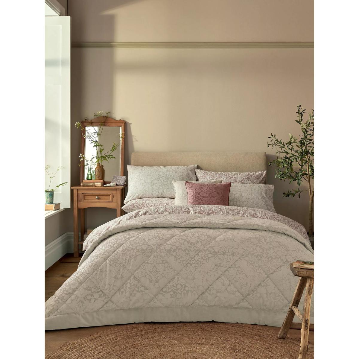 William Morris's iconic Strawberry Thief print is translated beautifully to this bedspread with a sophisticated embossed velvet technique. It has a luxuriously soft, embossed velvet face and elegant, quilted finish with a coordinating, plain dyed washed cotton reverse for a textured look.