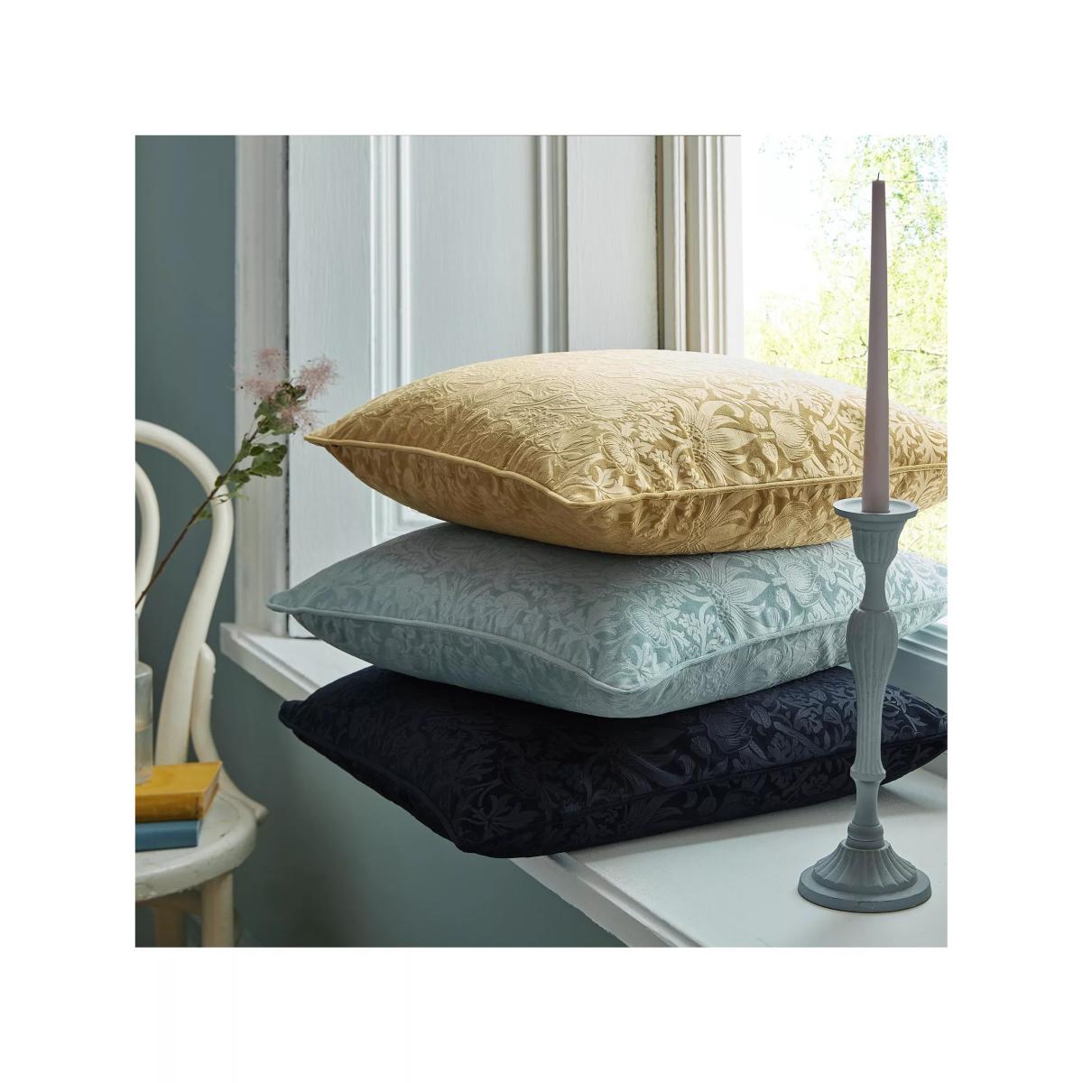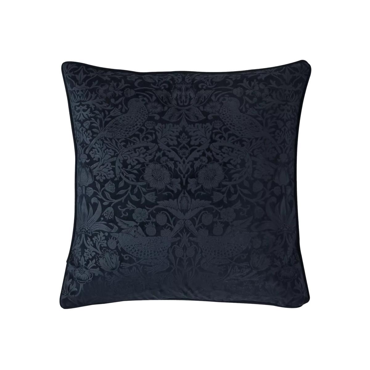 William Morris's iconic Strawberry Thief pattern is beautifully translated onto this sophisticated, embossed velvet cushion and finished with a tailored, piped edging.