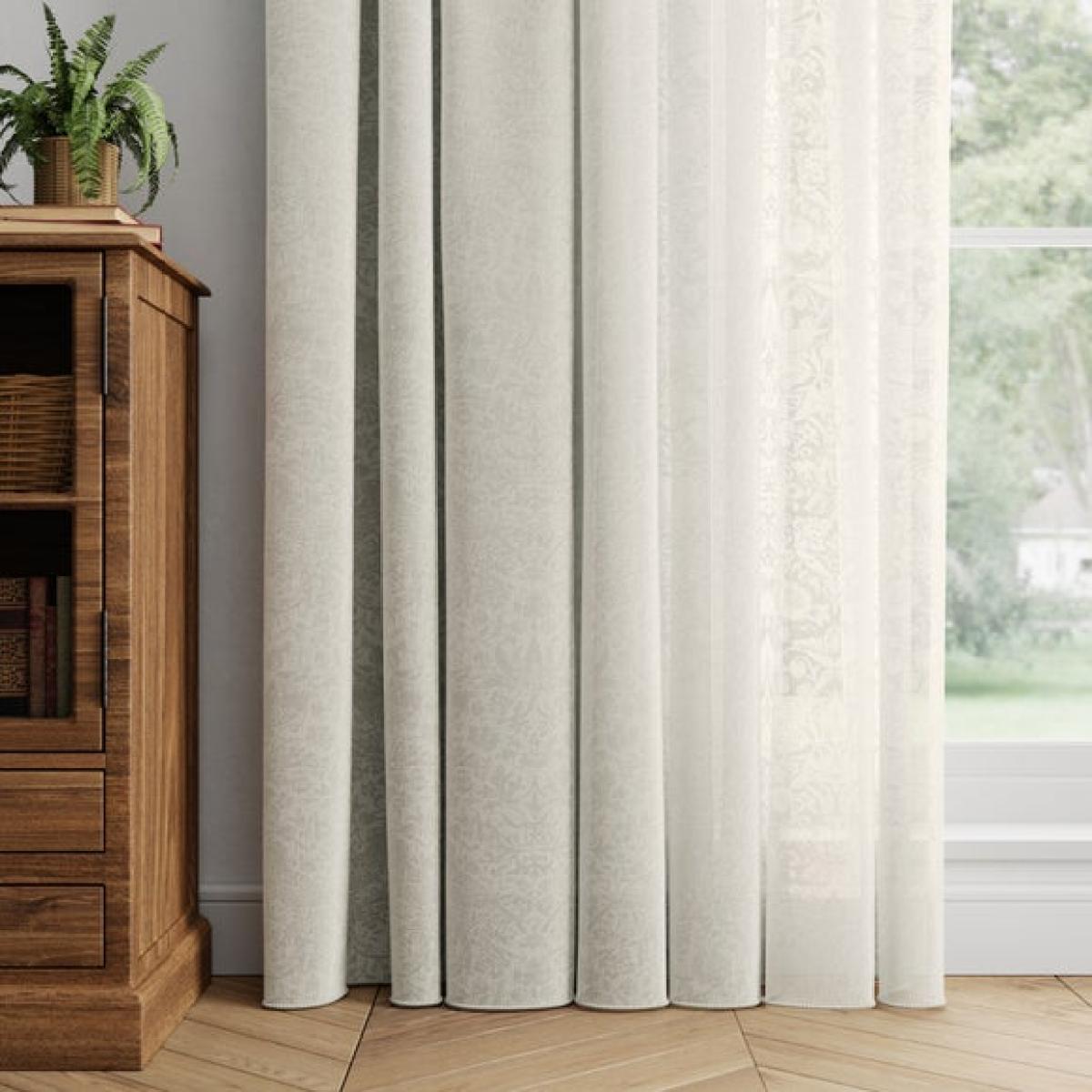 * Iconic William Morris Botanical, floral design * Made from recycled polyester * Lightweight * Available in different colourways * Available in a selection of header options Perhaps William Morris’s most recognisable design, Strawberry Thief was inspired by the thrushes that crept under Morris’s strawberry nets in his garden at Kelmscott Manor, Oxfordshire. The original pattern took several days to print using hand-carved woodblocks to build up the different colours, and ‘Strawberry Thief’ was consequently one of Morris’s firm’s most expensive cottons. Whilst waiting to see the first piece printed, Morris endured sleepless nights in his lodgings at Merton Abbey. Designed in 1883, Strawberry Thief remains one of William Morris’s most popular and iconic designs. Add sophisticated heritage charm to your room with the Strawberry Thief Sheer Made to Measure voile curtain. Featuring a rich, intricate botanical, floral design, this voile brings a luxurious touch to your space. Available in different colourways to complement your decor, the lightweight fabric is made from recycled polyester to offer the perfect balance of light and privacy. Bespoke to your window dimensions, this voile is available in a range of header options to suit your needs. Achieve a timeless and polished look that celebrates British craftsmanship and design legacy with this beautiful William Morris voile curtain.